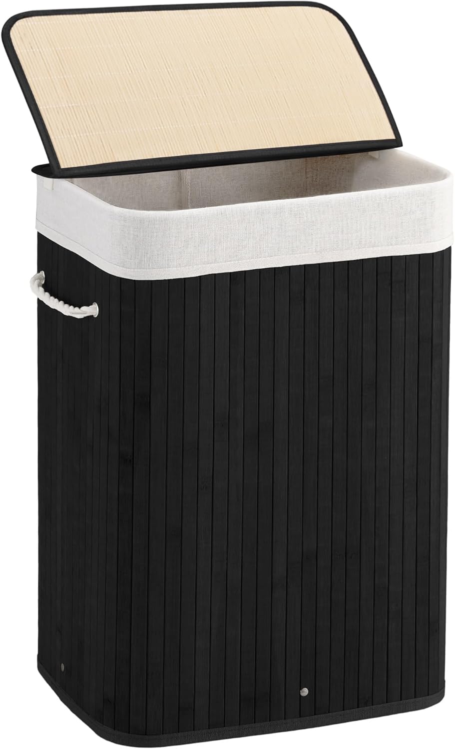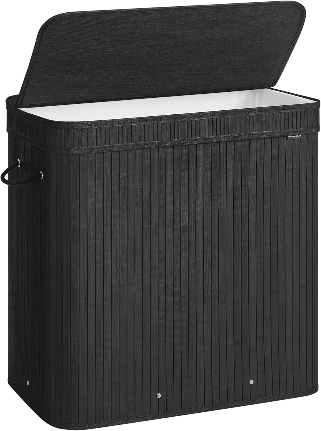 SONGMICS Laundry Hamper with Lid, Bamboo Laundry Basket, Removable Machine Washable Laundry Basket, with Handles, 39.6-Gallons, for Laundry Room, Bedroom, Bathroom, Ink Black ULCB062B01