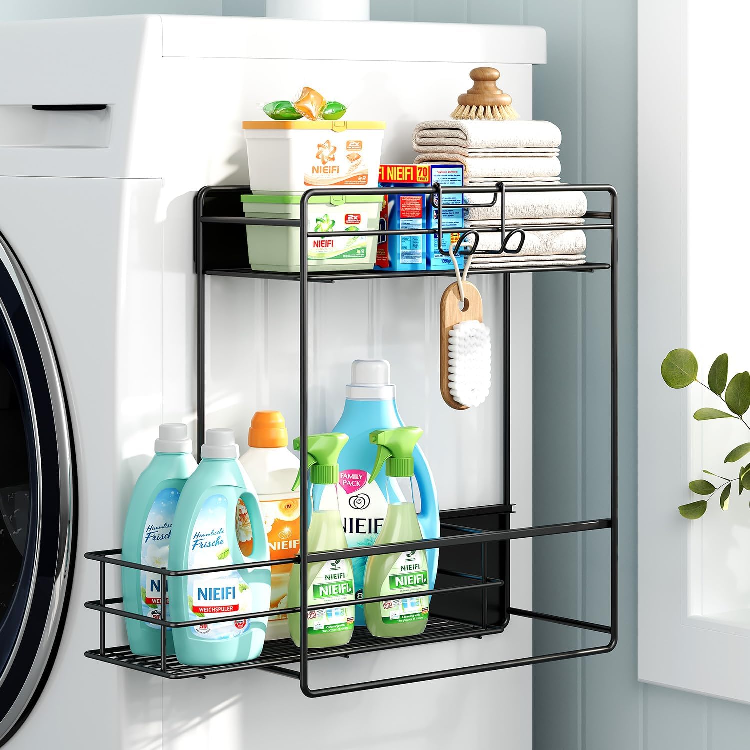 Nieifi Magnetic Shelves for Washing Machine, Heavy Duty, 2 Tier Magnetic Laundry Organizer, Dryer Sheet Holder for Laundry Room Storage, Black