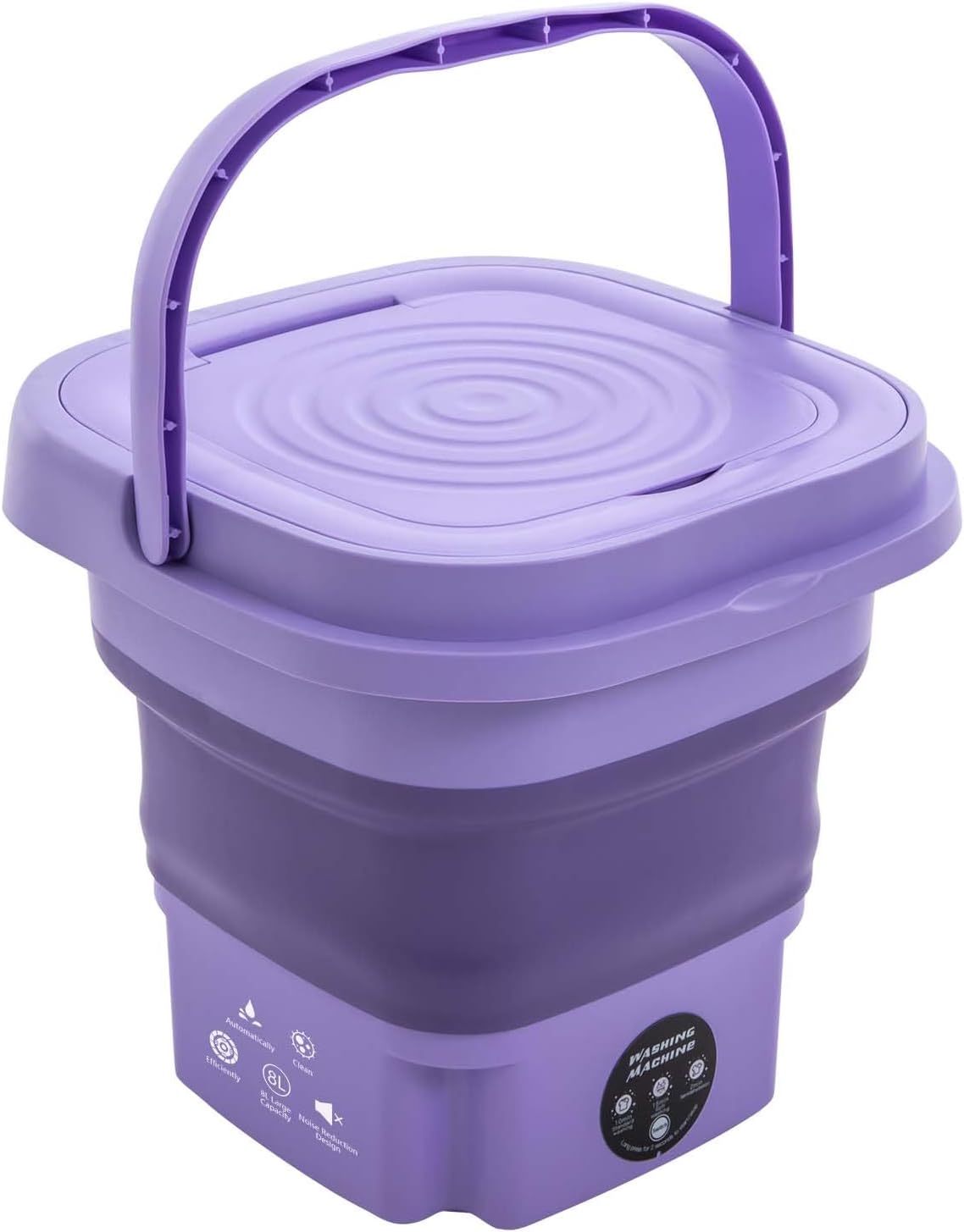 Portable Washing Machine, Foldable 8L Mini Washer with Drainage Basket, Multi-functional Washing Machine for Apartments, Dorm, Camping, RV, Travel Laundry (Purple)