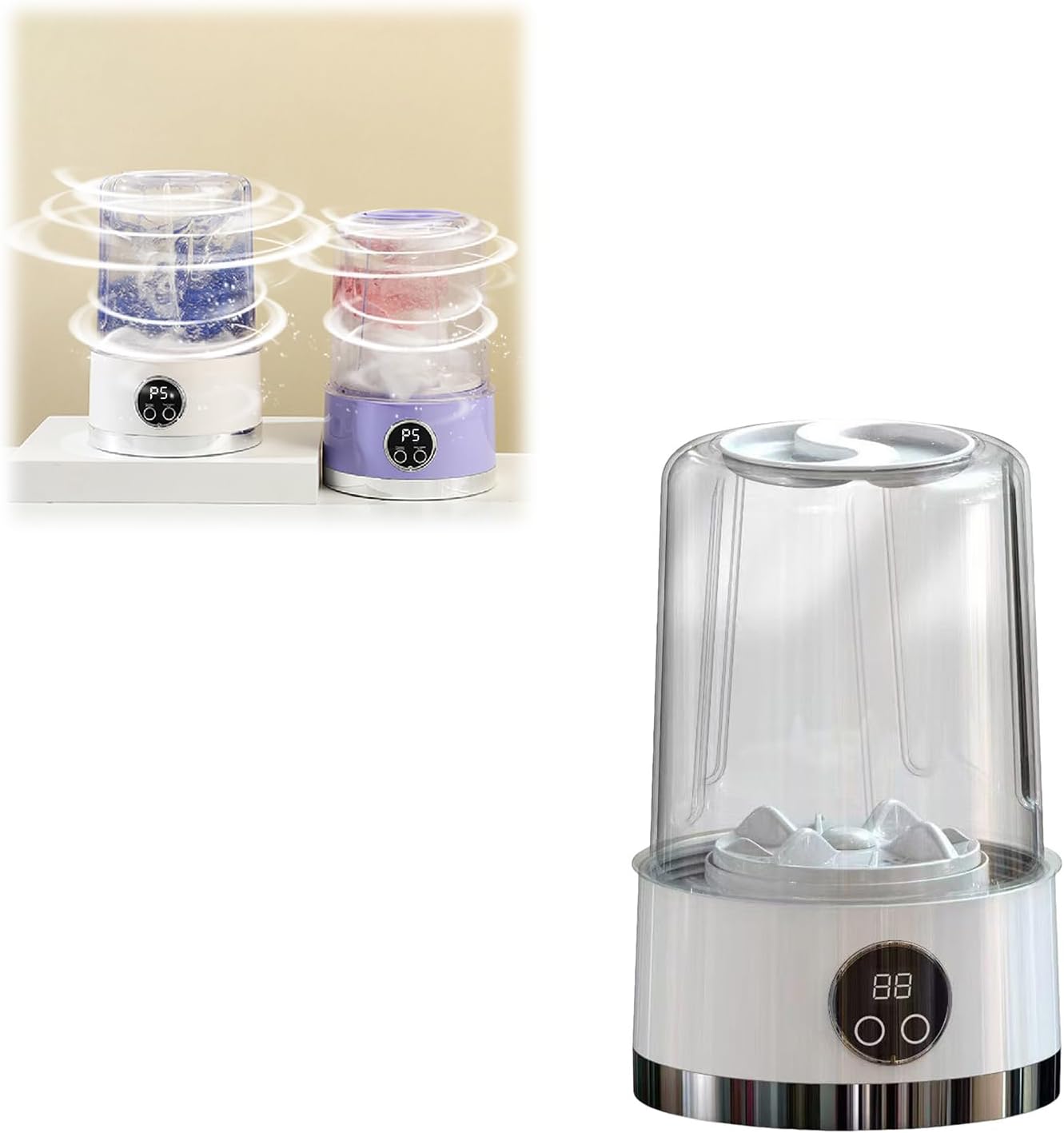 2025 Upgraded Mini Underwear Washing Machine, Portable Rechargeable Cordless Laundry Cup for Socks, Bras, Wireless Charging, Compact Automatic Washer for Travel, Dorm, Camping (White)