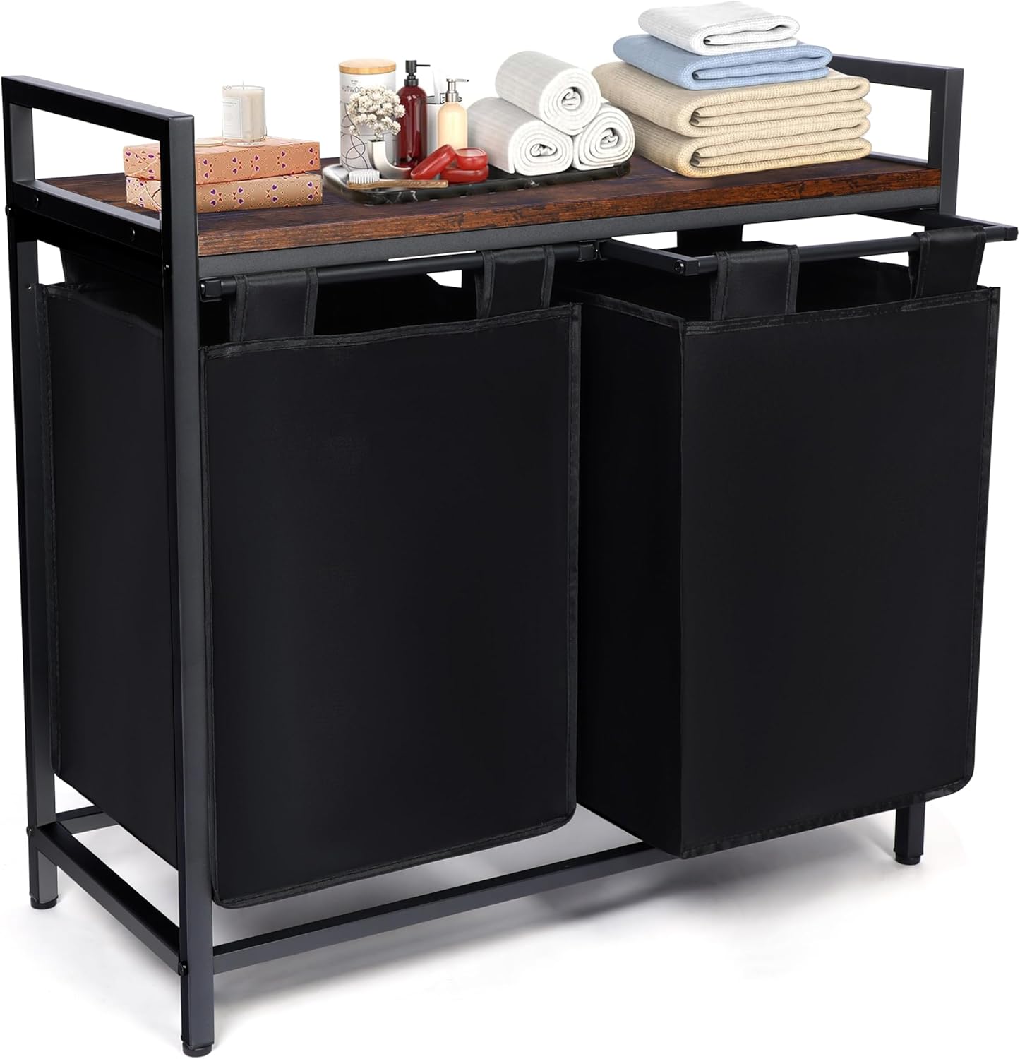 Whitmor Laundry Sorter, 92L Laundry Hamper with Shelf & 2 Removable Bags, 2 x 12.1 Gallons (46L), 28.8 x 13 x 28.4 Inches, Dirty Clothes Hamper Organizer for Laundry Room, Bathroom, Dorm, Black