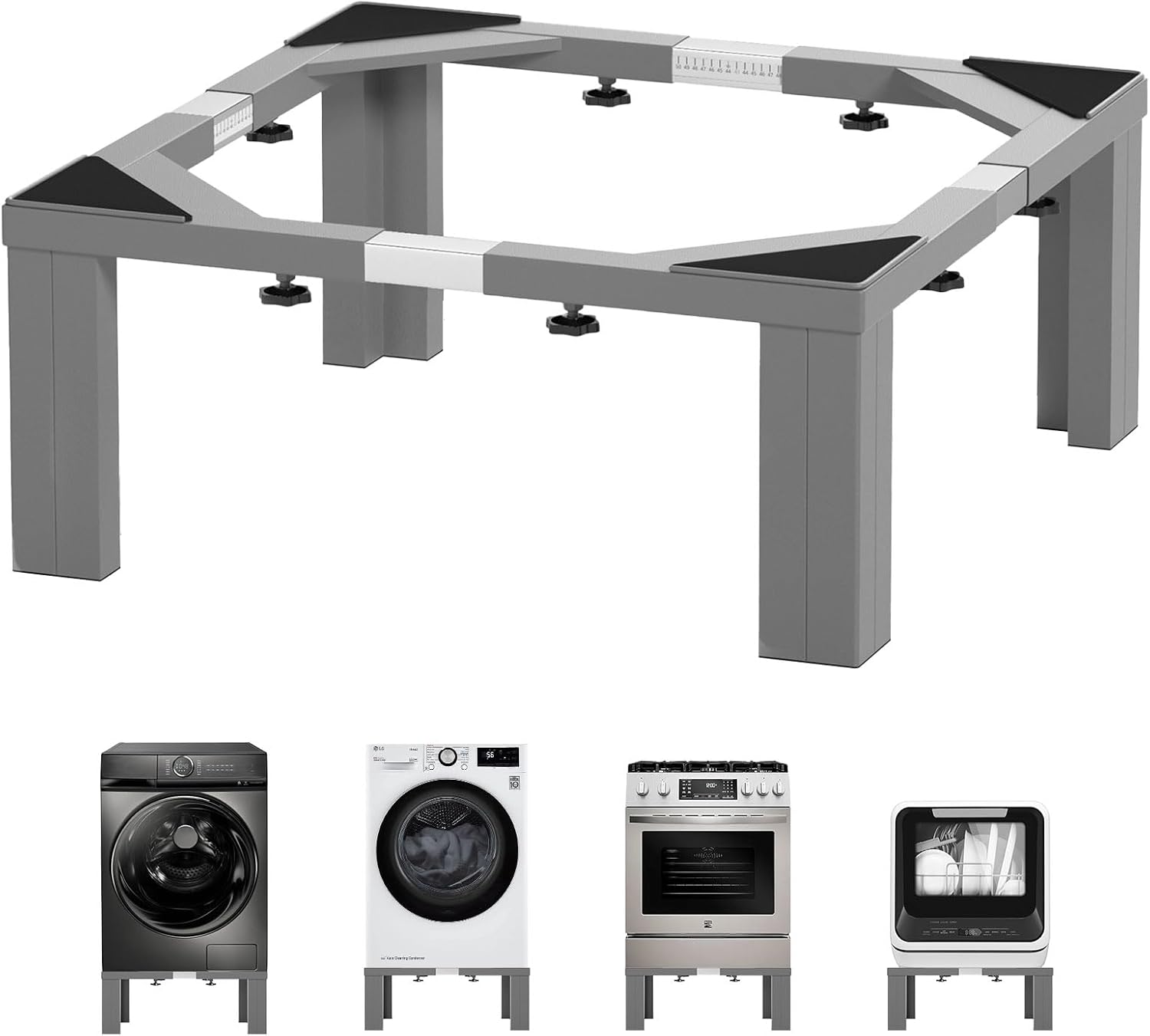 Chinchilla Heavy duty Stainless steel Laundry Pedestal ,12" Height Universal Washer and Dryer Pedestals, Adjustable Universal Washing machine stand and Fridge stand(Grey)