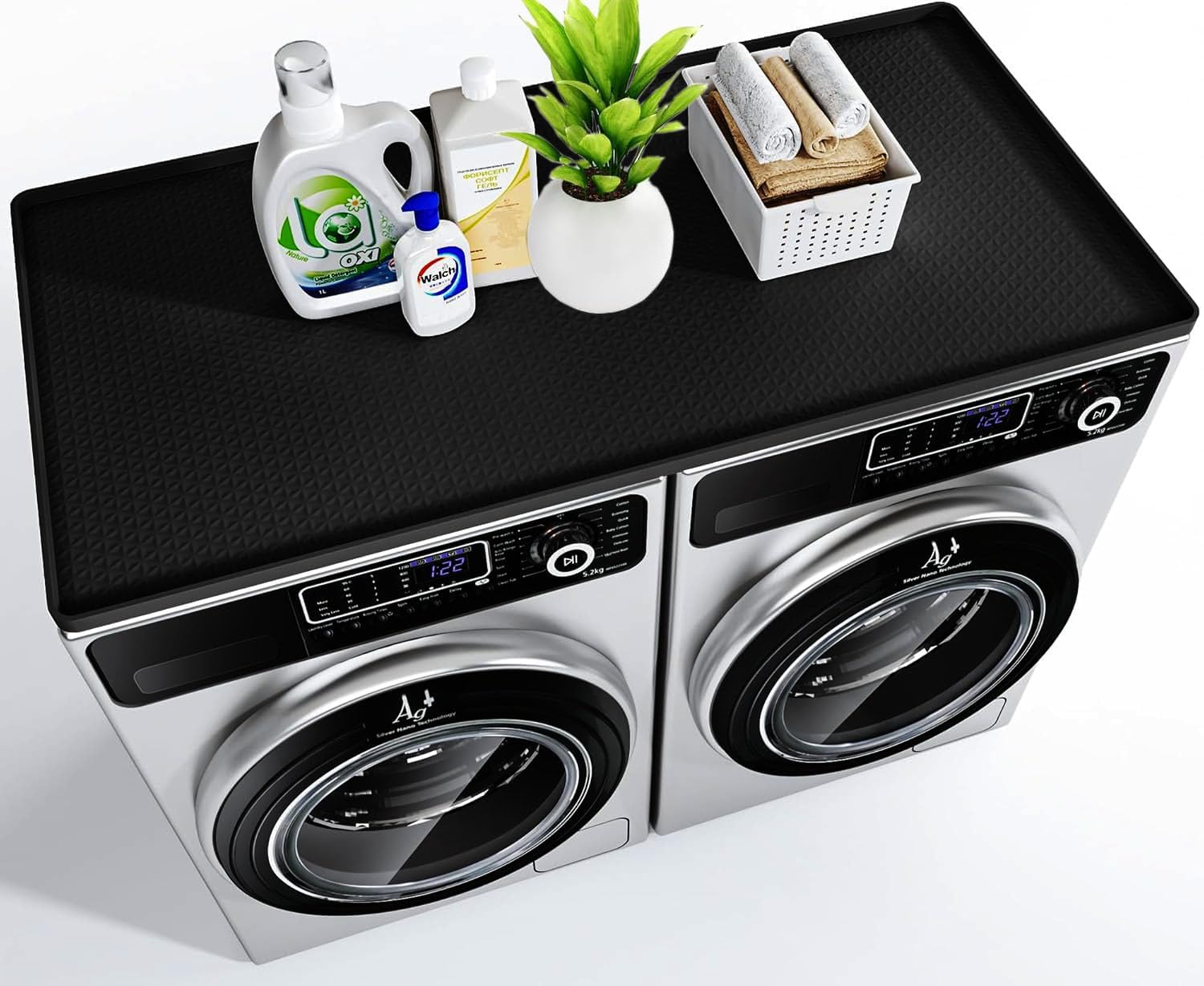 51.2" x 25.6" Washer and Dryer Top Cover Mat,Silicone Washer Dryer Countertop Protector Mat for Laundry Machine, Large Size Dust-Proof Washing Machine Dryer Topper
