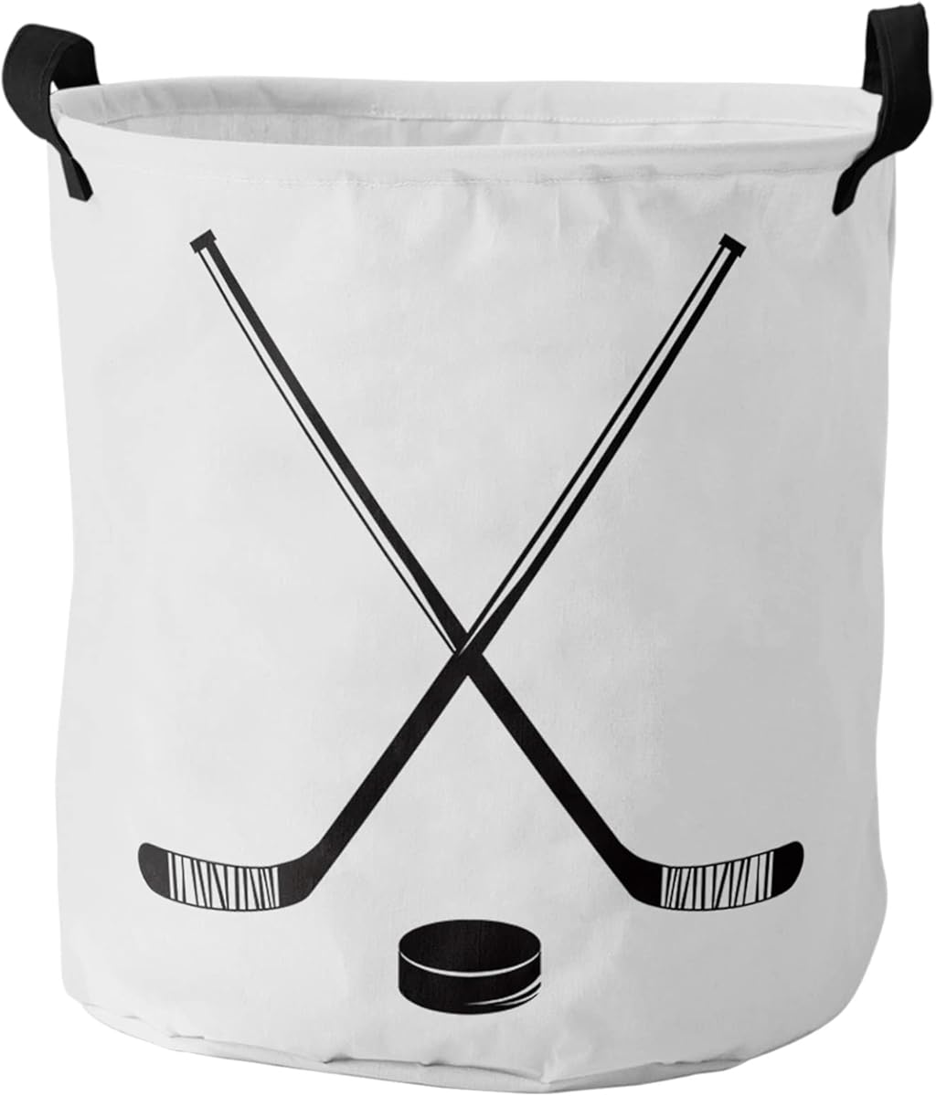 17-inch Laundry Hamper Foldable Laundry Basket, Minimalist Style Hockey Sticks Black Lines Waterproof Clothes Hamper for Bathroom Bedroom Living Room, Toy Baskets for Dollhouse