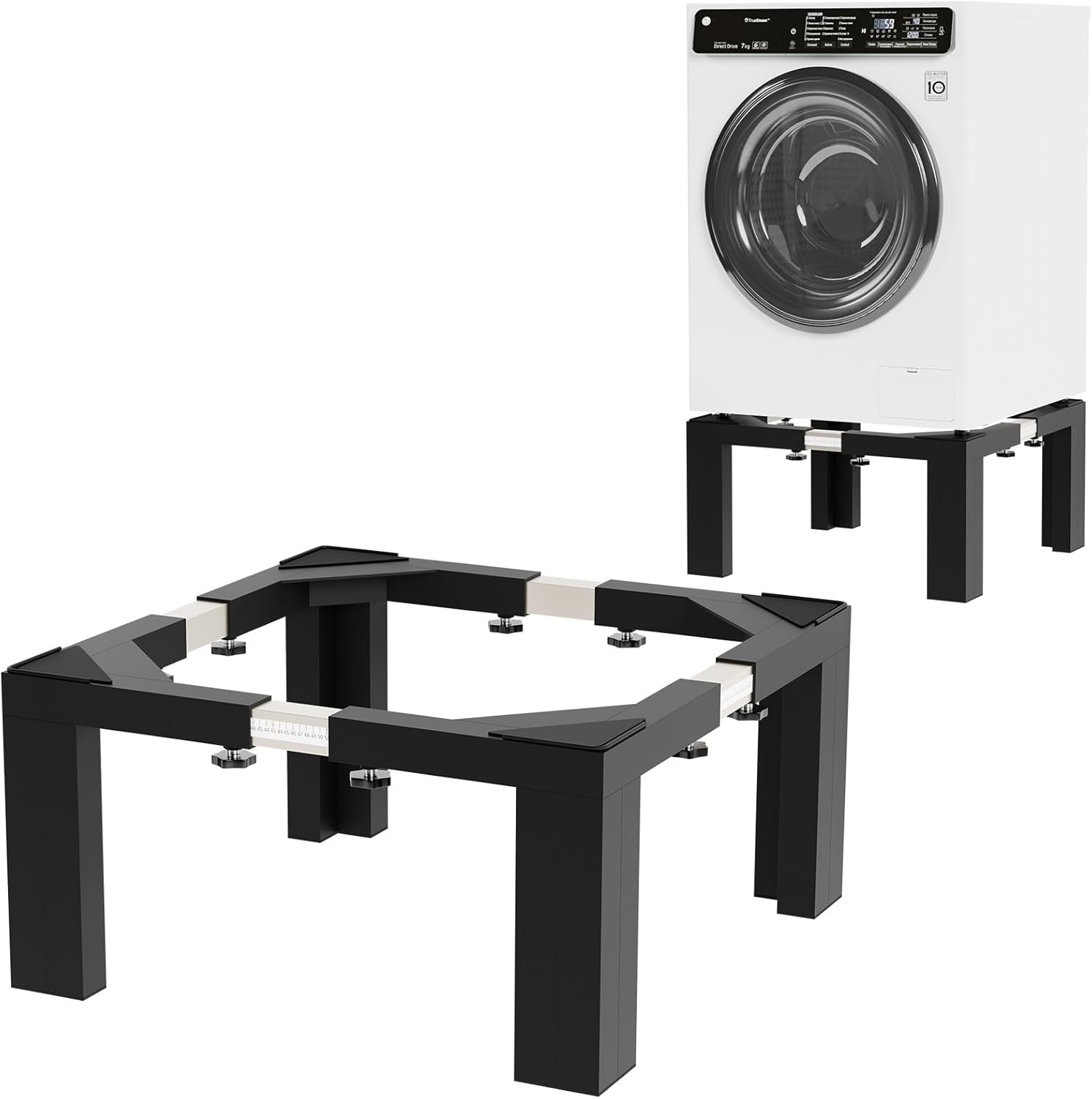 12" Height Heavy-Duty Laundry Pedestal, Full Size Adjustable Washer Dryer Stand with Non-Slip Mat, 17-29.5" Adjustable Width Washing Machine Base for Refrigerator, Dishwasher, Black
