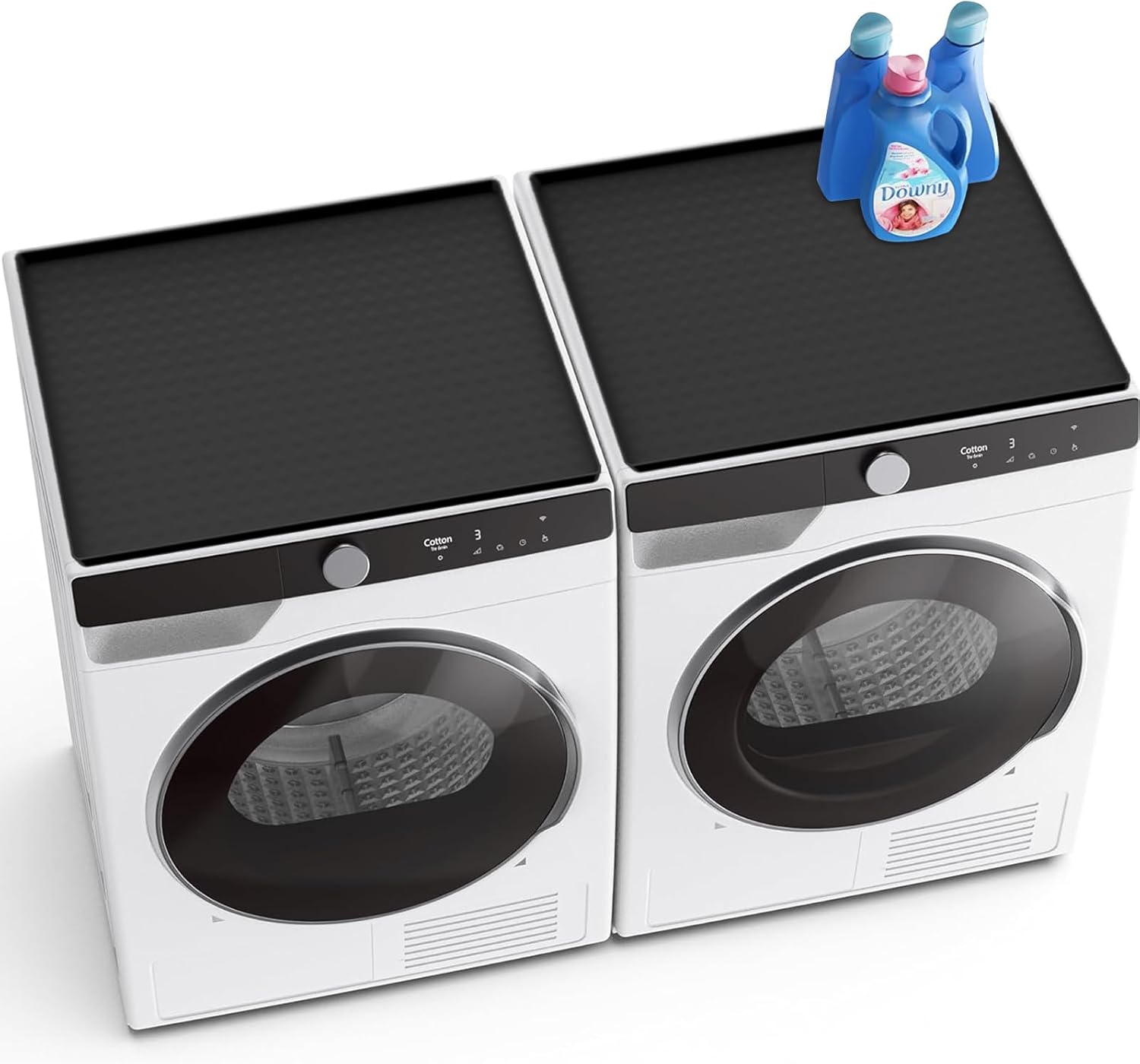 Washer and Dryer Covers for The Top, 27" x 27" Silicone Washer and Dryer Top Protector Mat, Non Slip Heavy Duty Washing Machine Cover Protector Top Load for Laundry and Kitchen (Black, 2pcs)