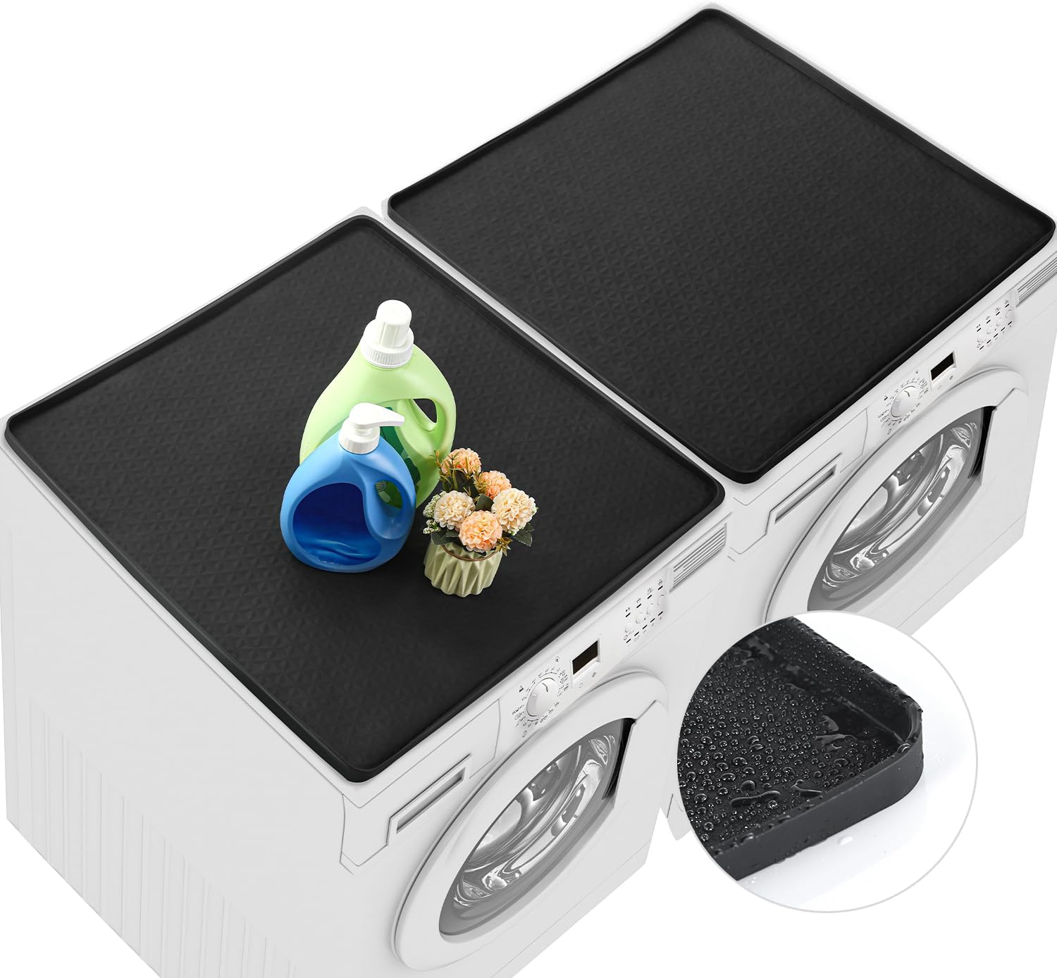 2 PCS Washer and Dryer Covers for the Top 25.6" X 25.6" Silicone Waterproof Washer Dryer Countertop Cover Anti-Slip Washing Machine Cover Washable Washer Dryer Top Protector Mat for Laundry (Black)