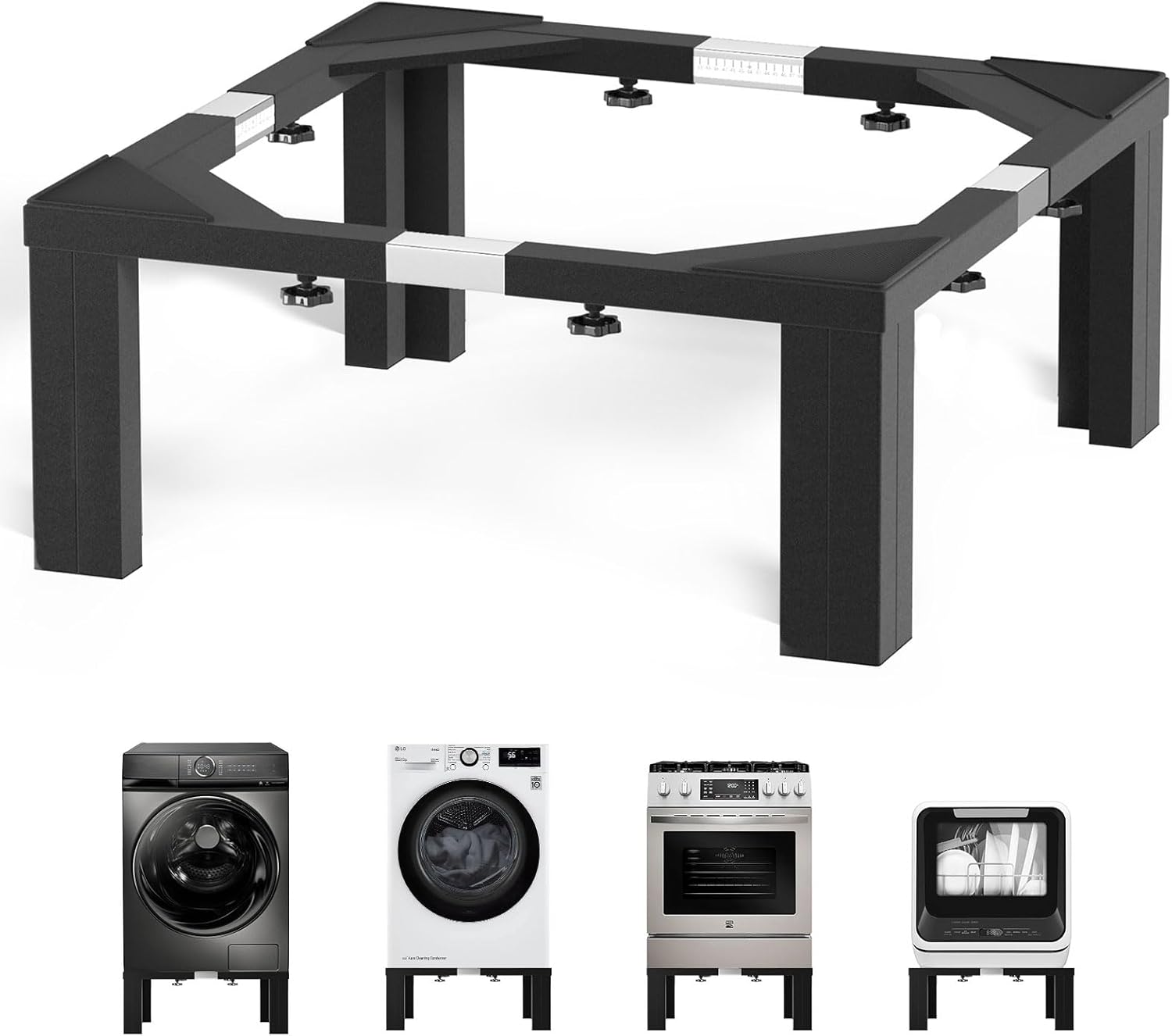 Chinchilla Heavy duty Stainless steel Laundry Pedestal ,12" Height Universal Washer and Dryer Pedestals, Adjustable Universal Washing machine stand and Fridge stand(Black)