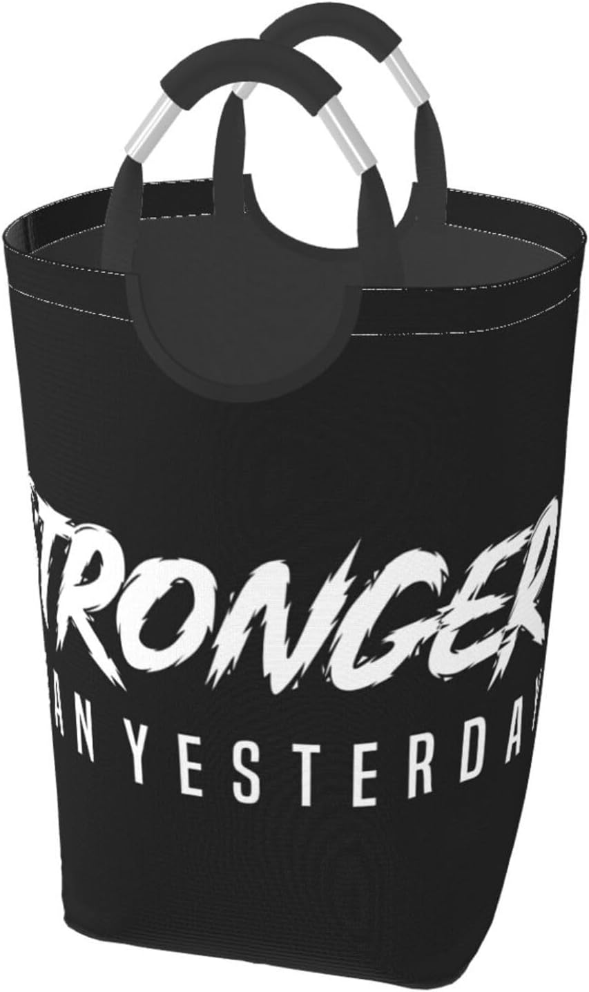 Stronger Than Yesterday - Bodybuilding 50l Collapsible Laundry Basket With Soft-Grip Handles - Foldable Clothes Hamper For Home, Dorm & Rv Storage