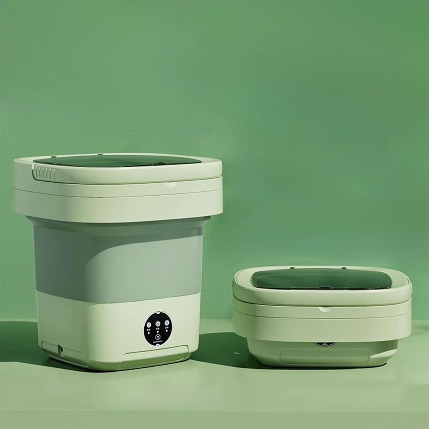 Portable Washing Machine, Mini Foldable Washer and Spin Dryer Small Foldable Bucket Washer, Suitable for Apartment Dorm,Travelling,Best Gift Choice (Green-8 L) (01)