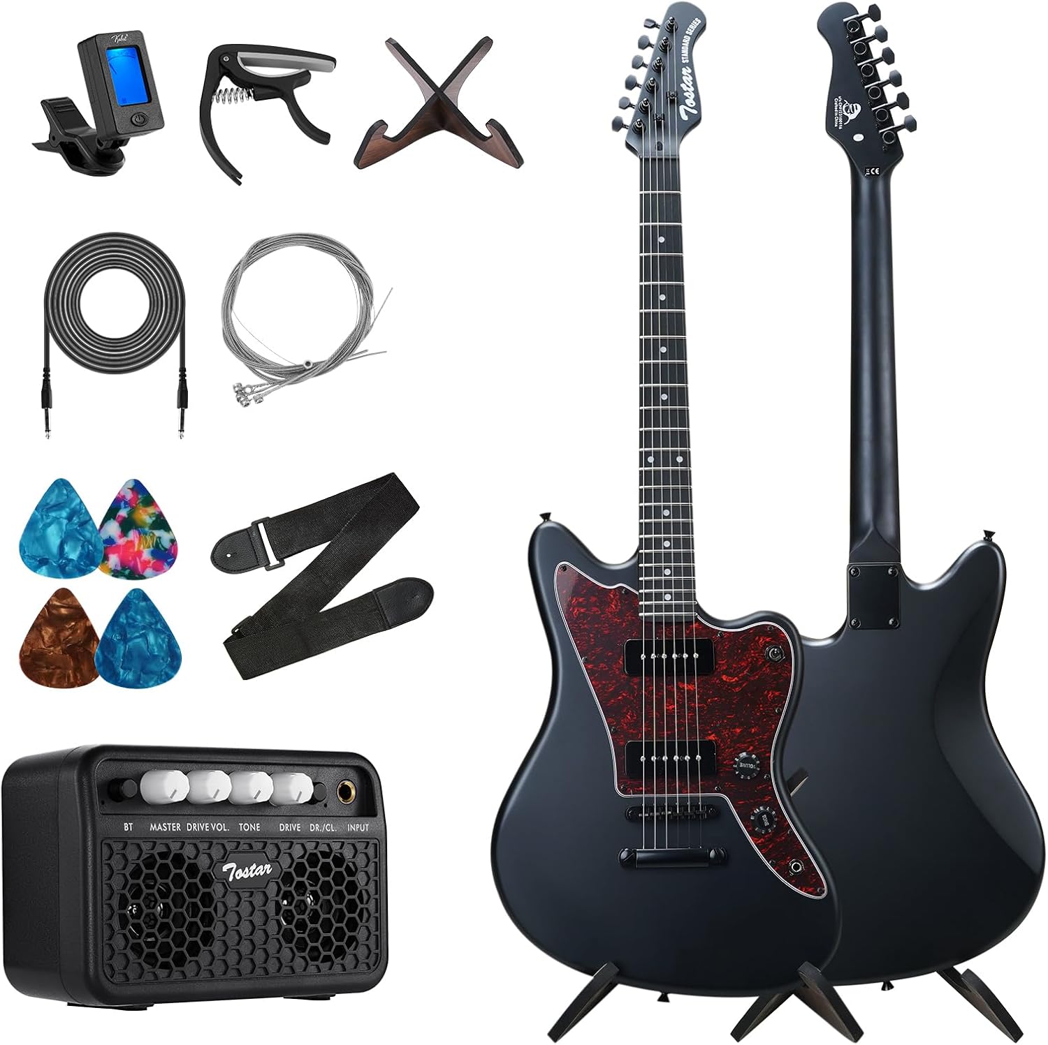 Tostar 39" Electric Guitar Kit with 10W Amp, P90 Pickup, Black Matte Finish, Tune-O-Matic Bridge, Solid Body Electric Guitar for Adults with Tuner, Capo, 4 Picks, Strap, Gig Bag, Christmas Gift