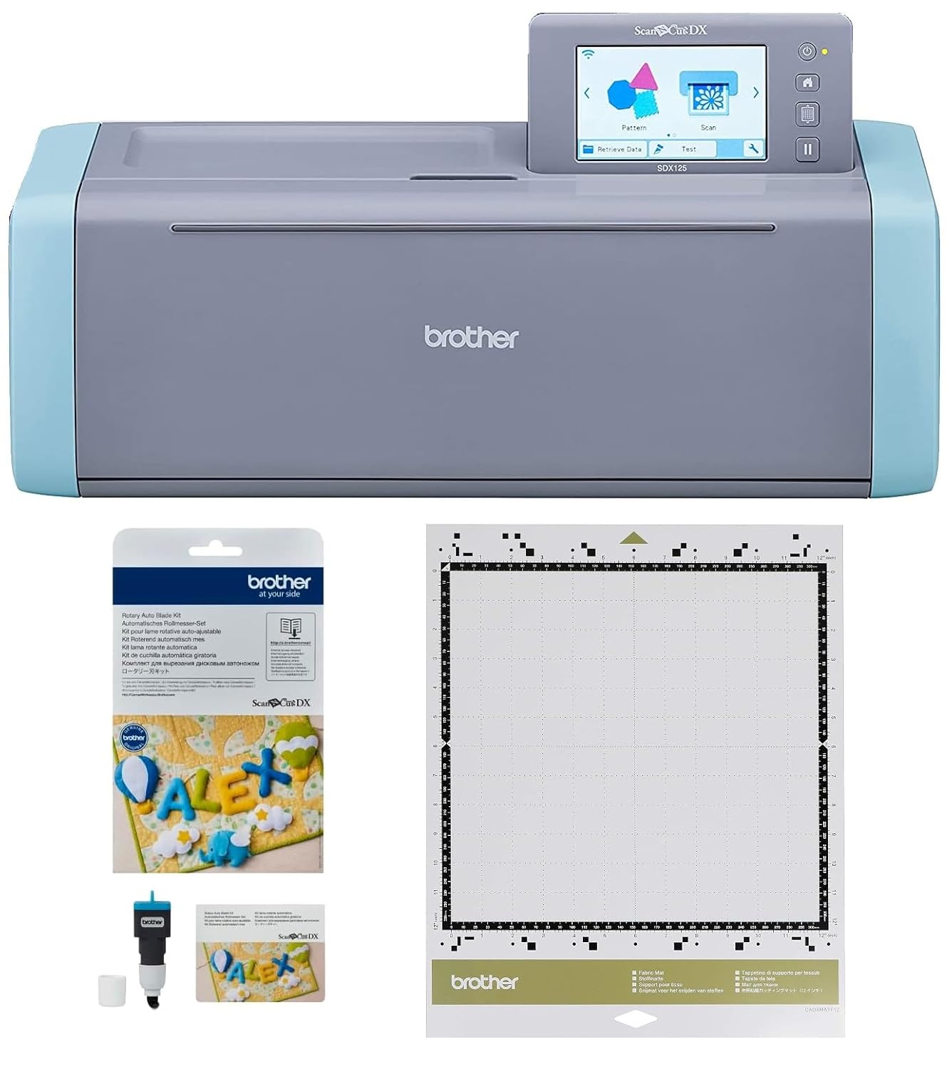 Brother ScanNCut SDX125E Electronic DIY Cutting Machine with Scanner, Plus Rotary Auto Blade Kit and Fabric Mat