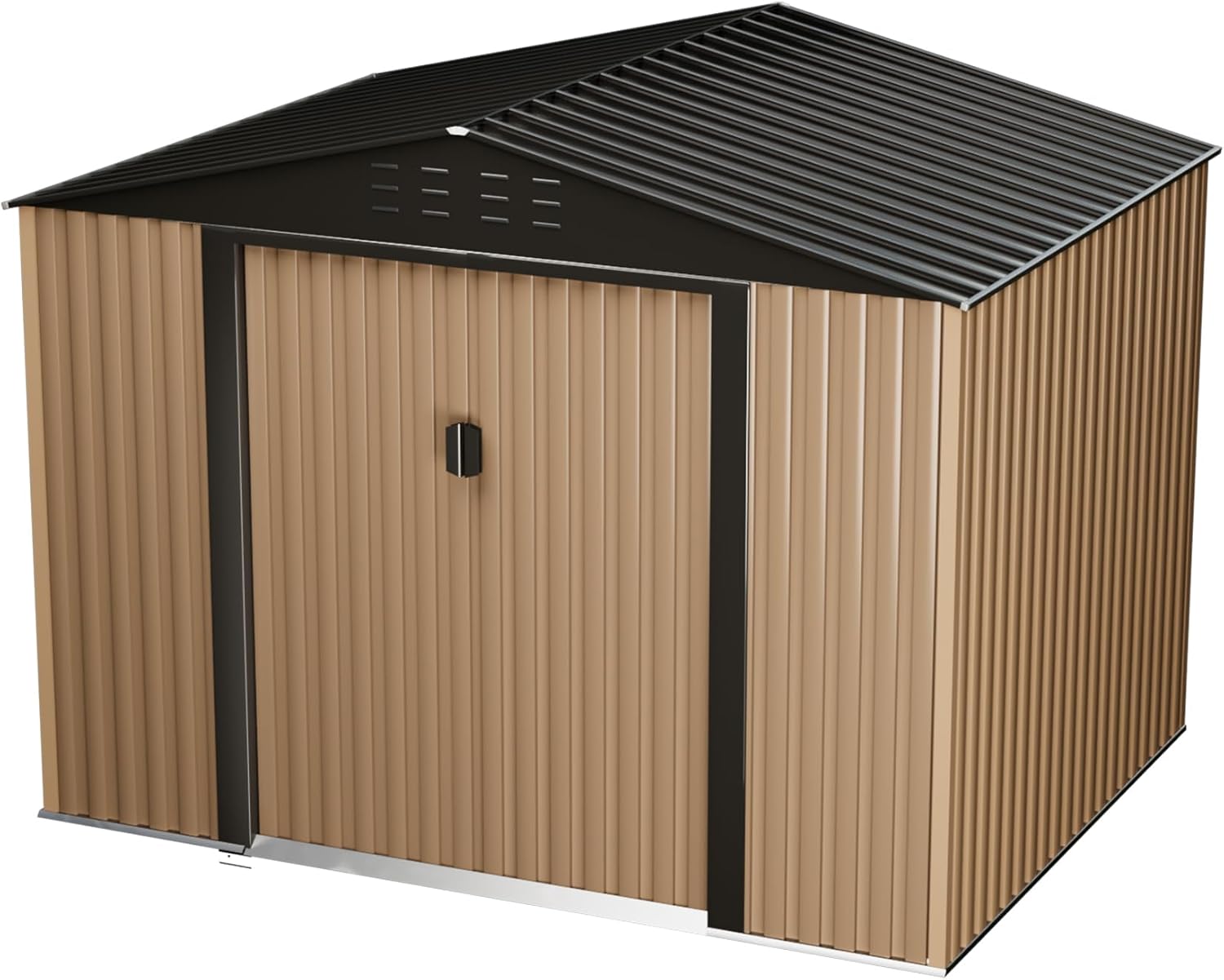 Large Metal Storage Shed, 10 x 8 FT Outdoor Storage Shed, Outdoor Storage Cabinet,Metal Garden Tool Shed with Roof, Door & Lock, for Patio Garden Yard, Brown