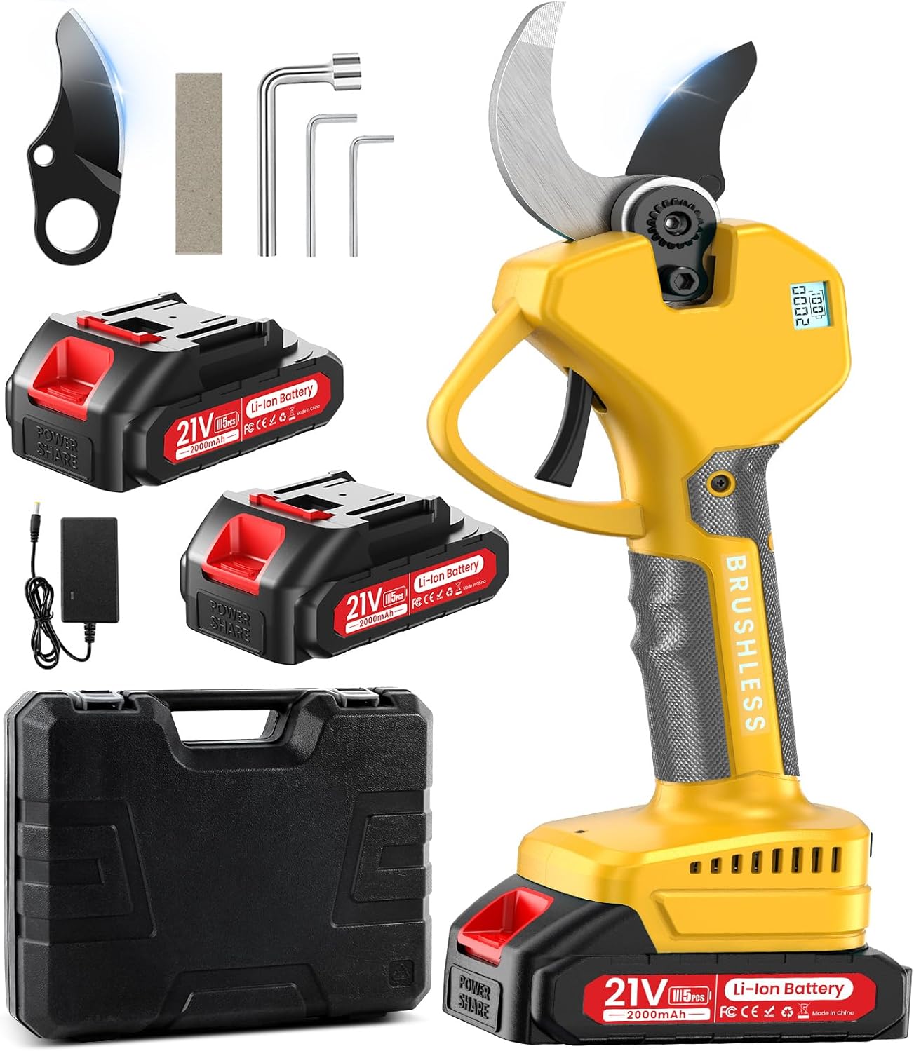 Electric Pruning Shears Cordless Pruner Shears Brushless 2.0 Inch Cutting Diameter with 2 * 2Ah Battery Pruning Shears Garden Tool for Tree Trimming Branch Cutter