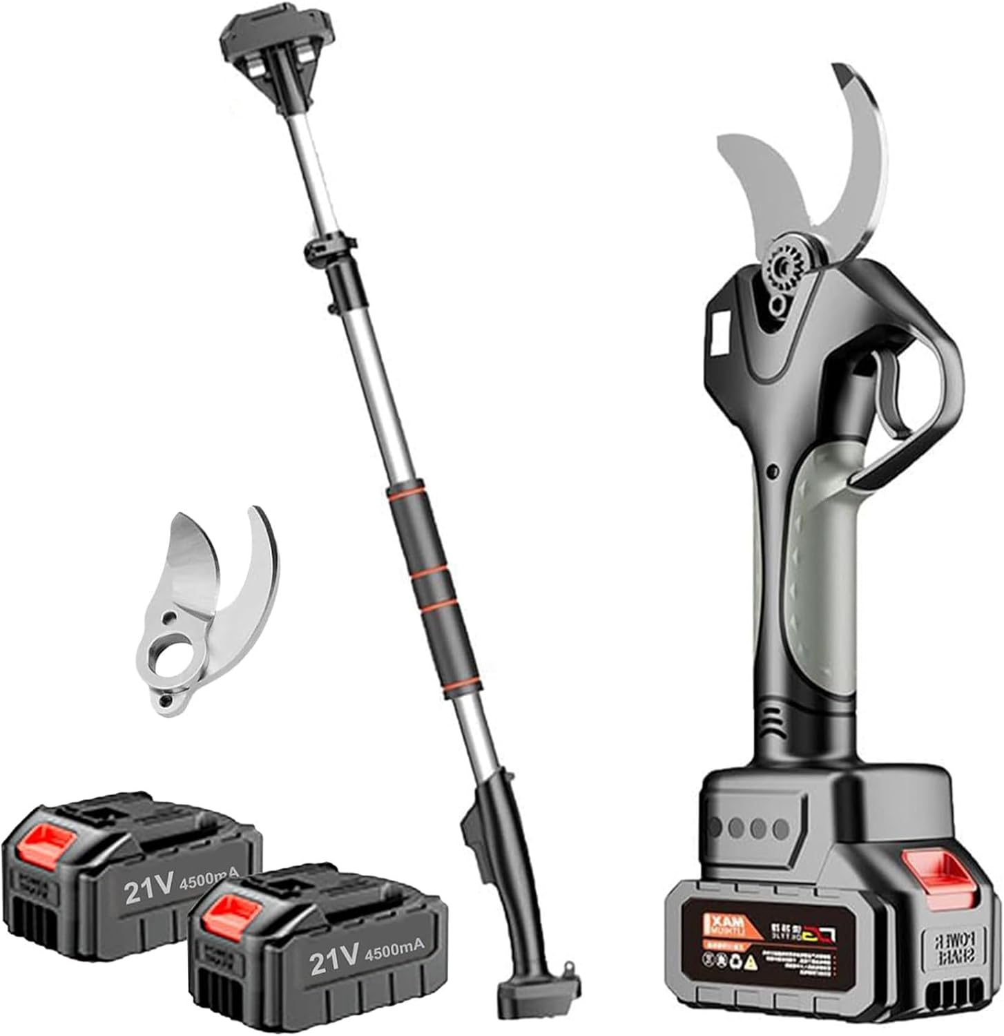 Electric Pruning Shears with Extension Rod, 50mm Electric Garden Shears with 4500mAh Lithium Battery, Tree Branch Pruner for Orchards and Yards,2 Battery