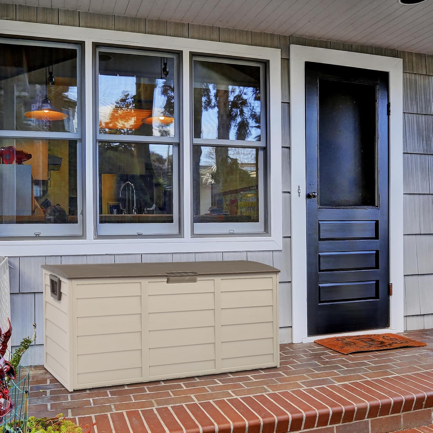 Outdoor Storage Box, Patio Storage Chest Bin, 75 Gallon Deck Box, Storage Bench for Gardening Tools, Outdoor Patio Deck Storage Box, 44"L x 21.3"W x 19.3"H Outdoor Storage for Patio Furniture Cushions
