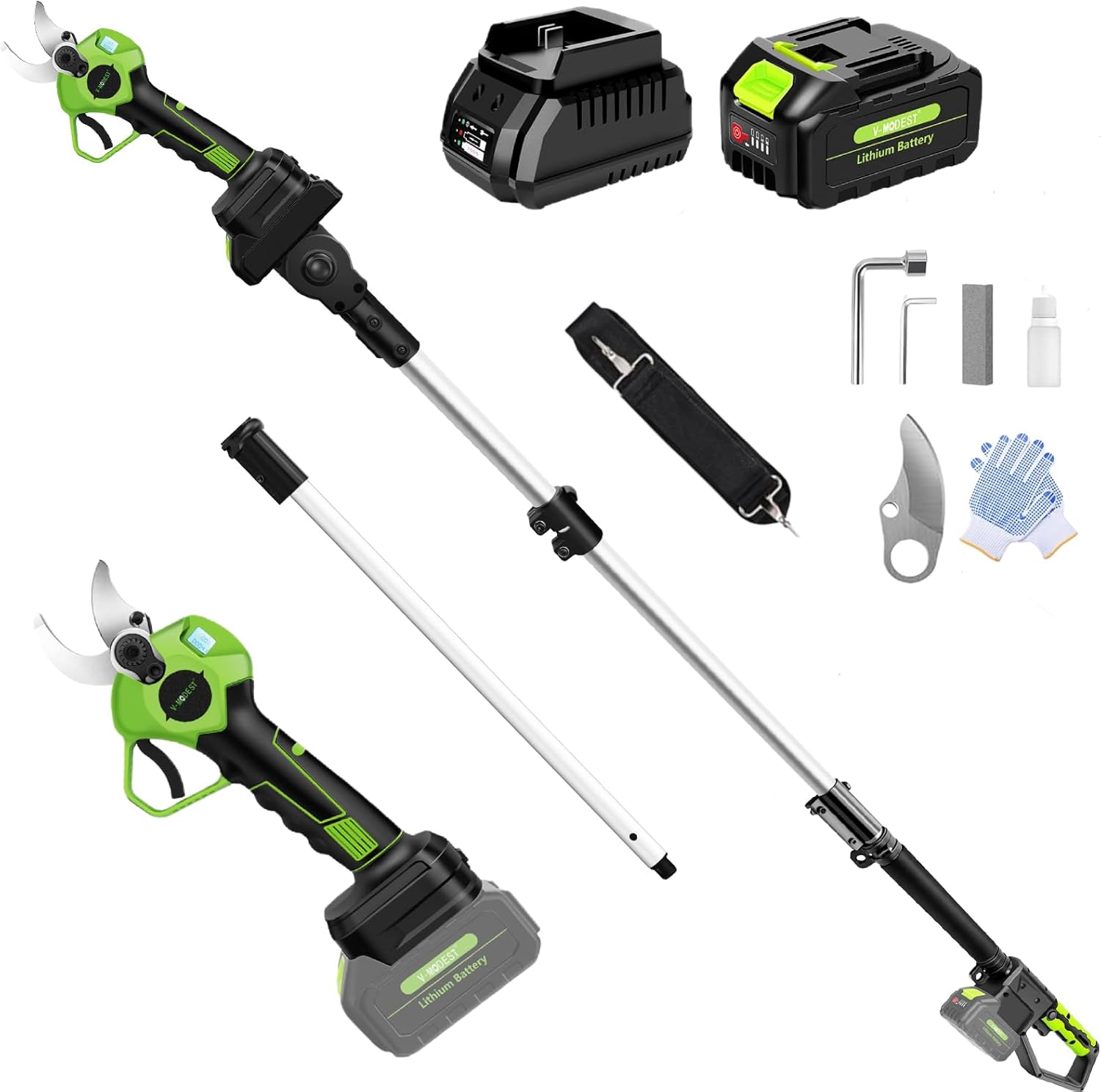 2-IN-1 Electric Pole Pruning Shears Cordless, 1.6" Cutting Diameter Cordless Pruner with 15 FT High Reach Extension Pole, 21V 4.0Ah Battery Powered Pole Pruner for Tree Trimming, LCD Display