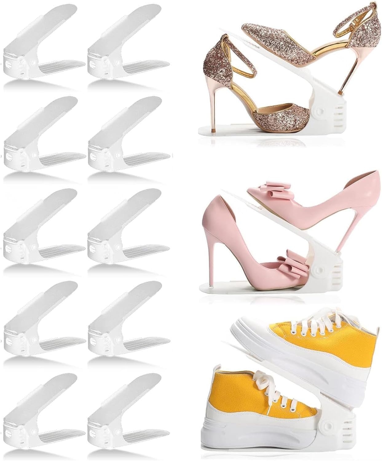 Shoe Stacker, Adjustable Shoe Slots, Double Deck Shoe Slot Organizer for Freestanding Stacking Shoe Holder,White-30