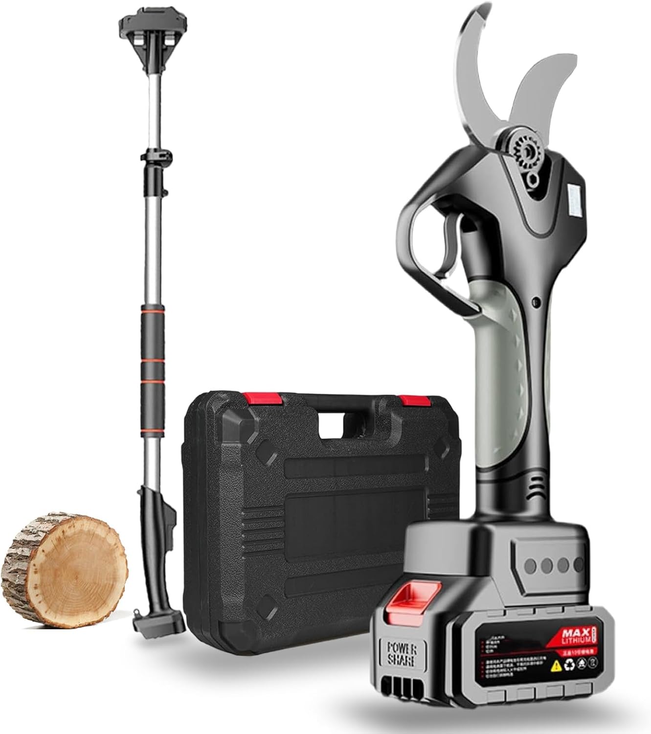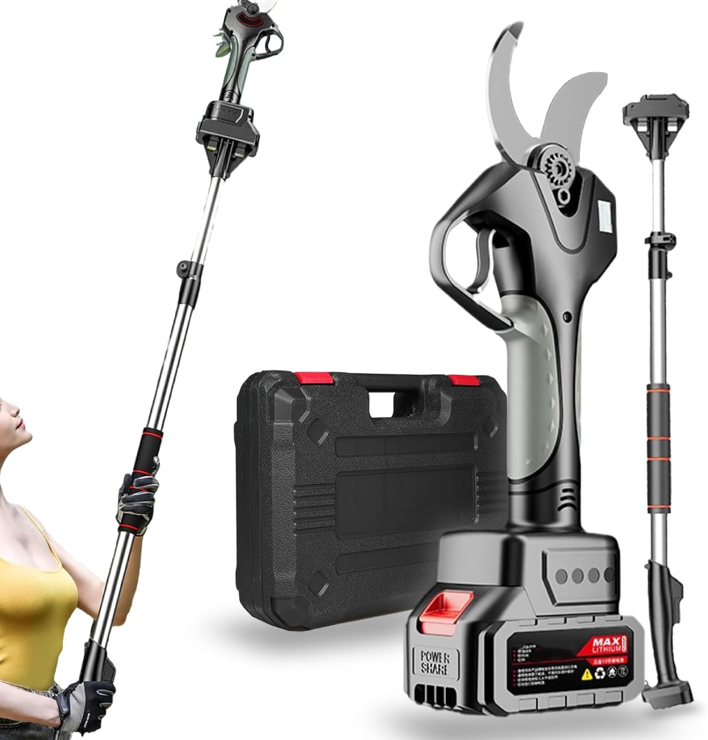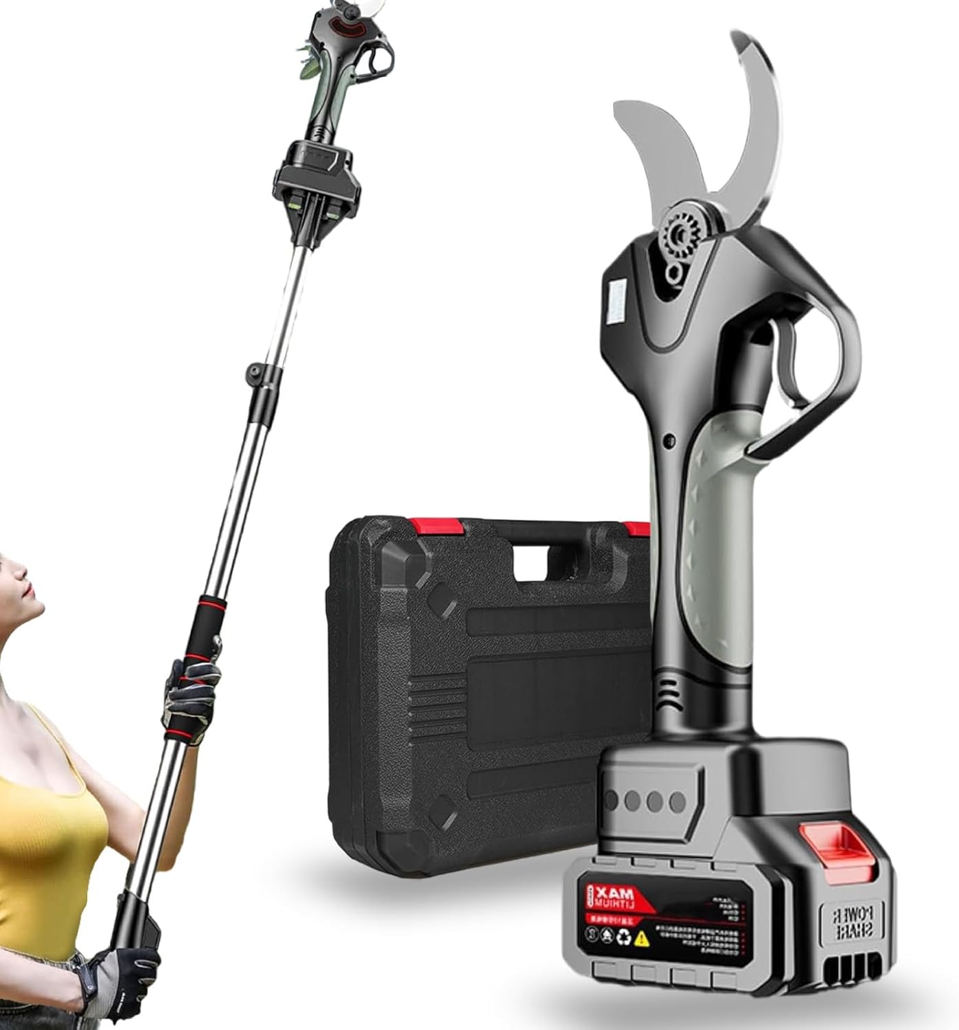 21V Cordless Electric Pruning Shears,wireless garden scissors,1.96-inch (50mm) lithium battery scissors,with Extension Poles,for Hedge, Bush, Orchard,1Battery