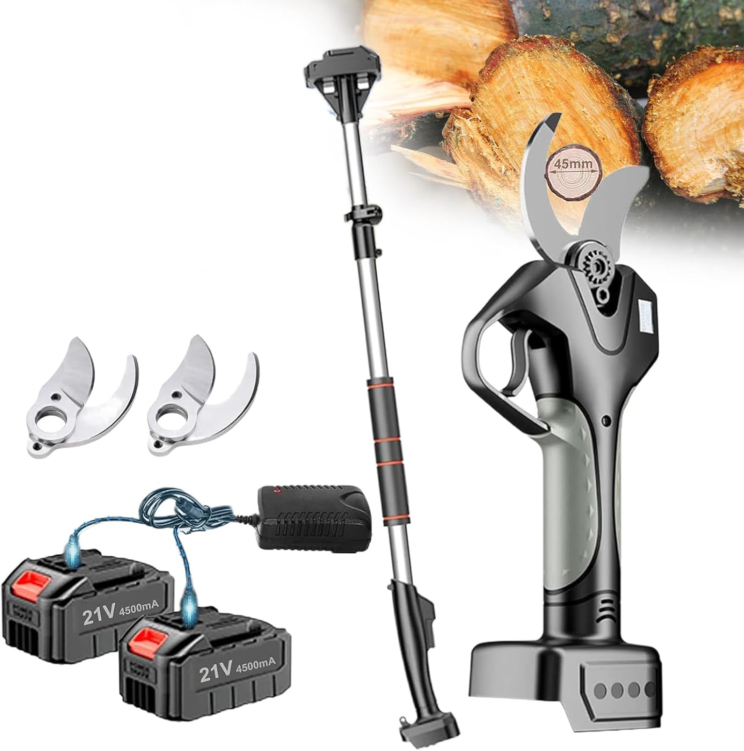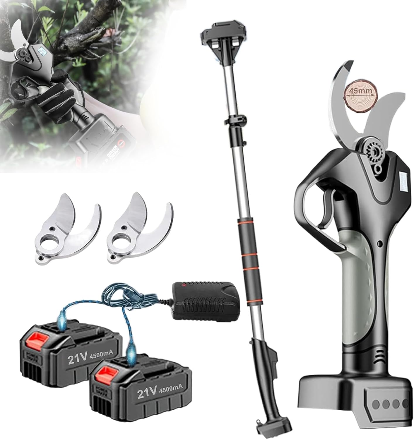 Electric Pruning Shears for Gardening, Brushless Cordless Pruner Shear, Battery Powered Tree Pruner with Max 81In Extension & Replacement Blade Set, 1.57In Cutting Diameter,1battery