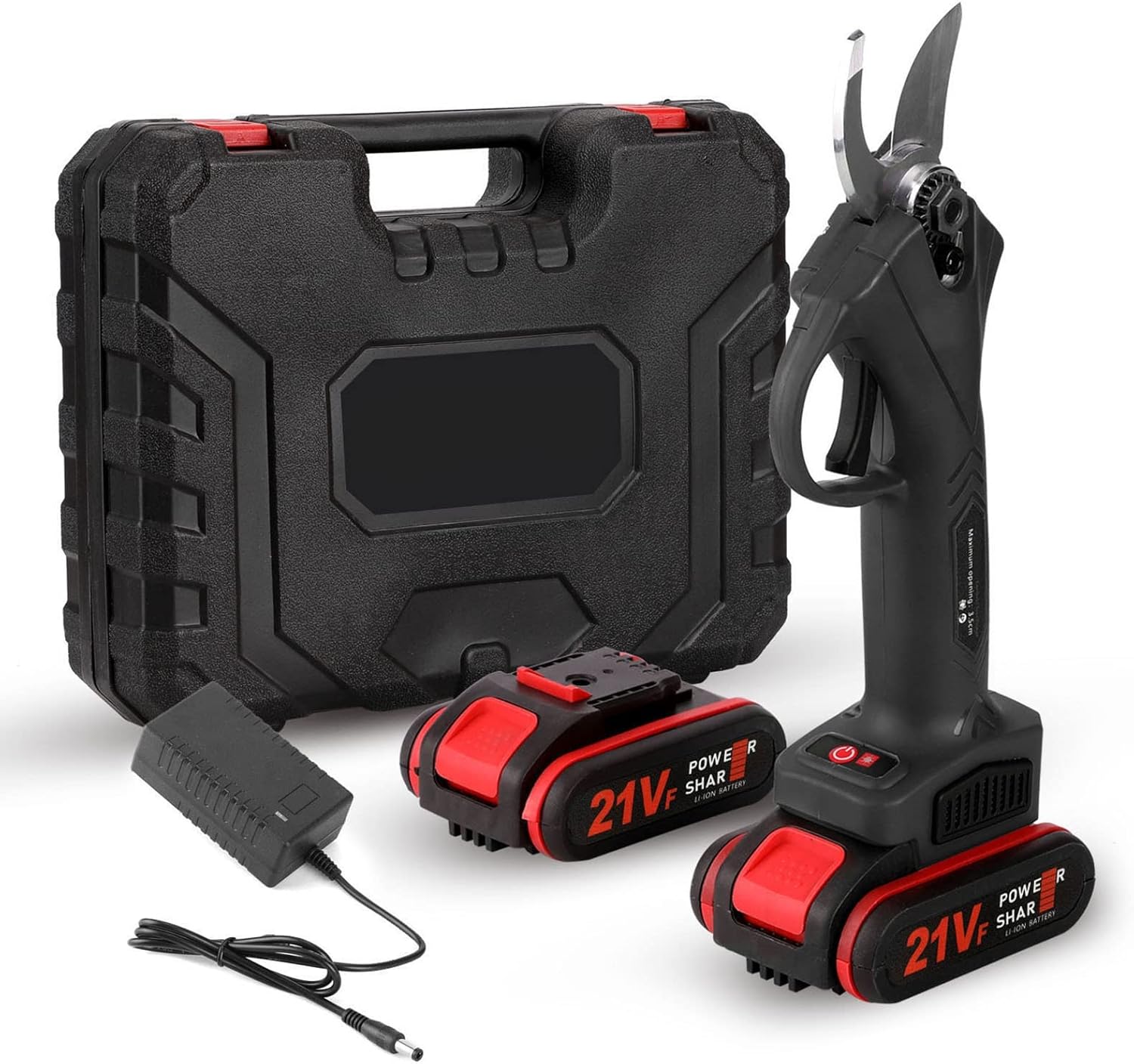 21V Cordless Pruner Lithium-ion Progressive Pruning Shear Efficient Scissors Bonsai Electric Tree Branches Garden Tools S40 40mm, Nero
