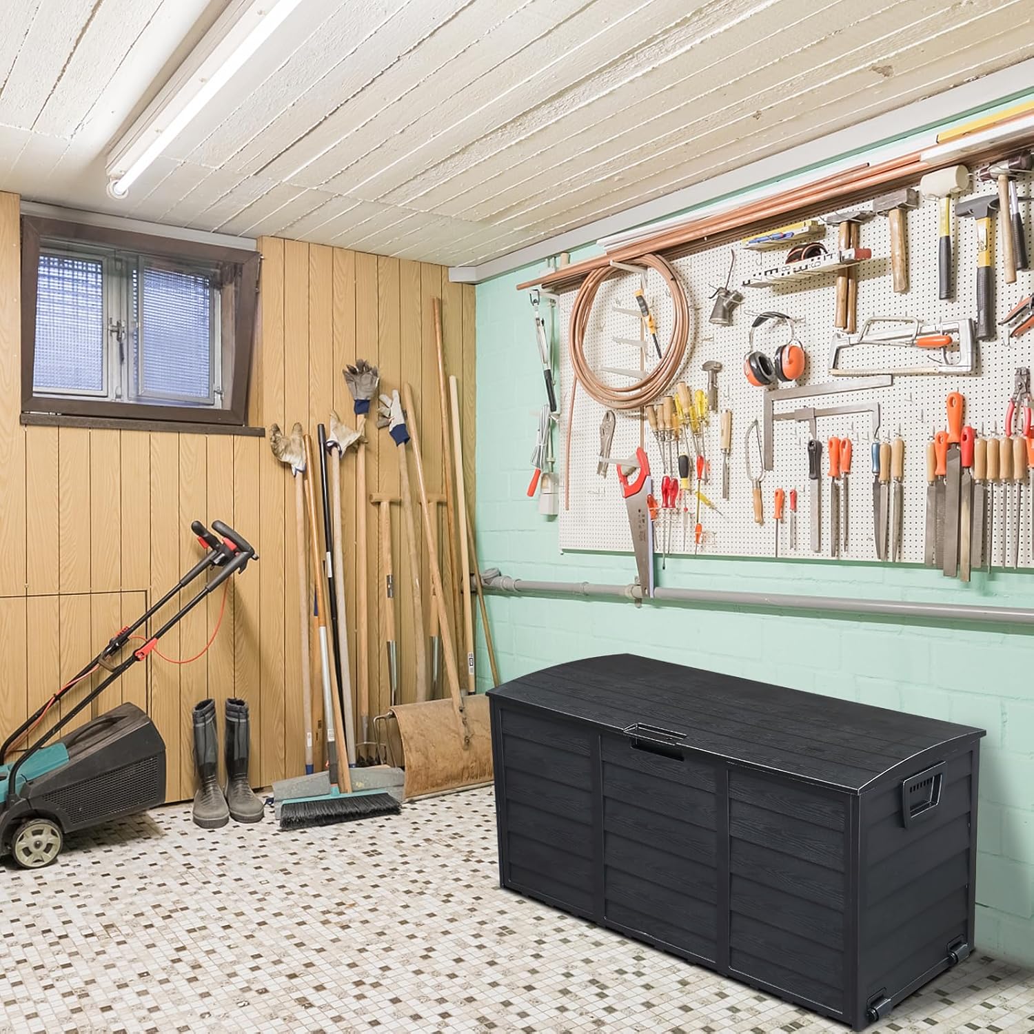 75 Gallon Outdoor Storage Deck Box-Organization and Outdoor box Storage for Patio Furniture Outdoor Cushions, Pillows, Garden Tools, 44""L x 21.3""W x 19""H Polypropylene Resin, Black