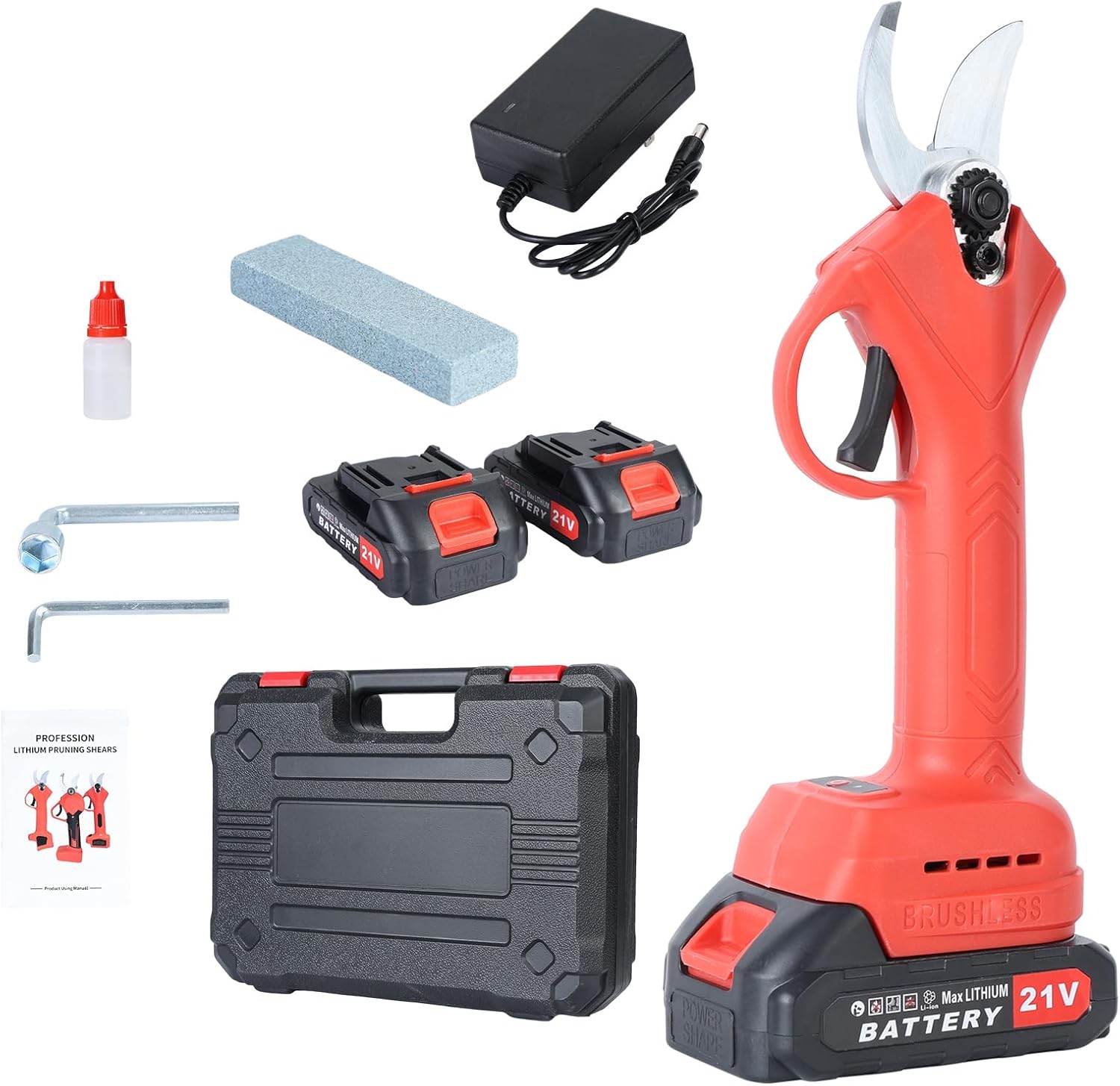 Electric Pruning Shears Cordless, Brushless Battery Power Pruning Scissors, Tijera Podadora para Arboles Frutales Electrics, with 2 PCS Rechargeable 2 Ah Battery US Plug