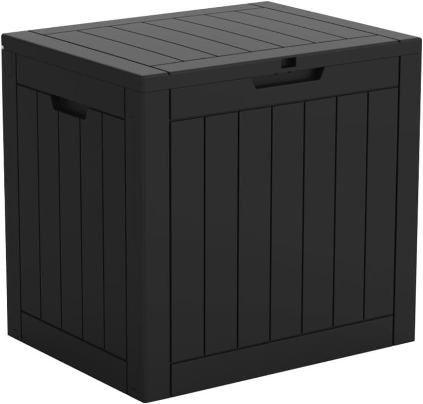 Deck Box 30 Gallon, Lockable Outdoor Storage Delivery Box for Garden Tools Patio Furniture Pool Supplies Black