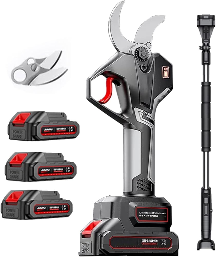 Electric Pruning Shears Cordless with 21V Rechargeable Battery,28-33mm cutting diameter scissors and extension rod, Cordless Electric Secateur (2.8vm