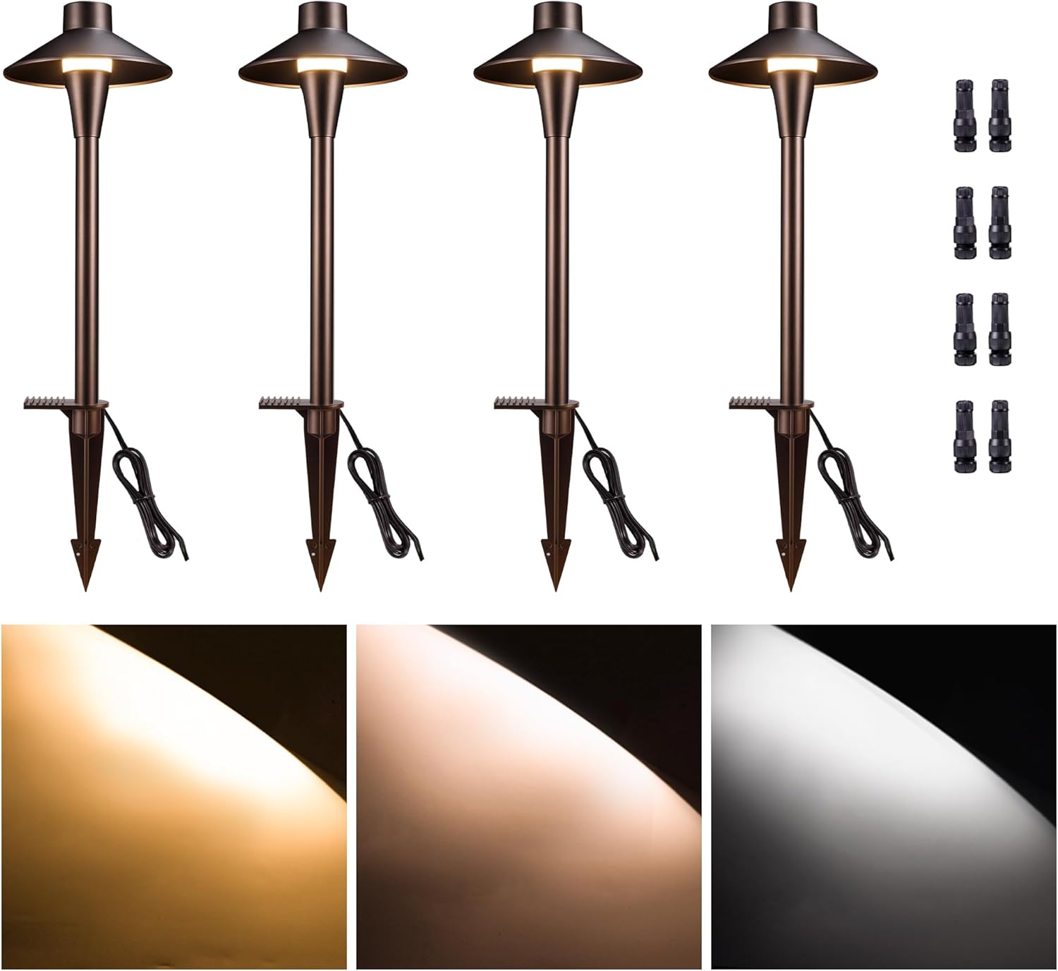 Low Voltage Pathway Lights, 3CCT LED Landscape Path Lights, Outdoor Waterproof IP65, Wired ORB Aluminum 5W 150LM for Sidewalk Step 4 Pack