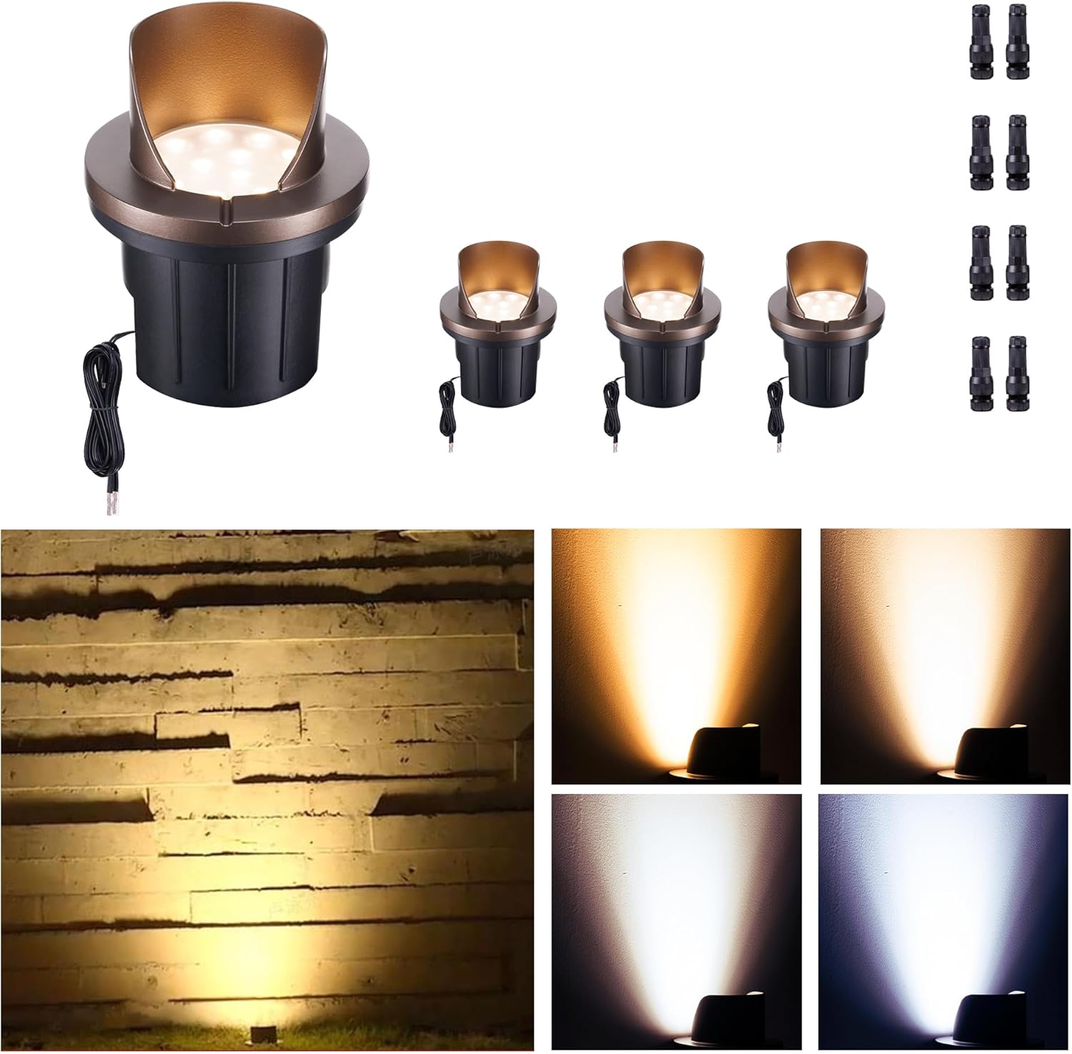 LED In-Ground Well Lights, Low Voltage Landscape Lights Outdoor Uplighting, 12V Anti-Glare IP67 Wired ORB Fixtures for Trees & Walls, 4 Pack, Color Temp Random: 3000K or Upgrated 5CCT