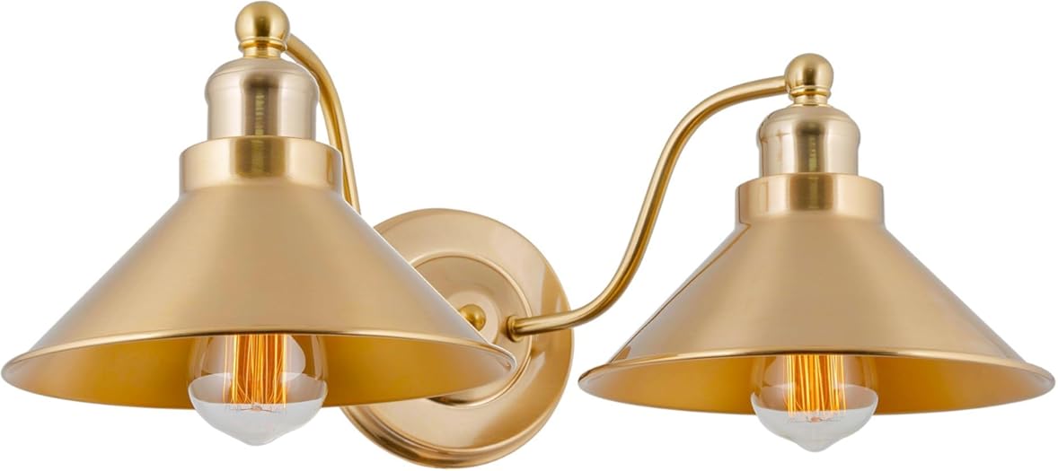Kira Home Welton 19" 2-Light Modern Farmhouse Bathroom Light, Vintage Wall Sconce Barn Light, Cool Brass Finish