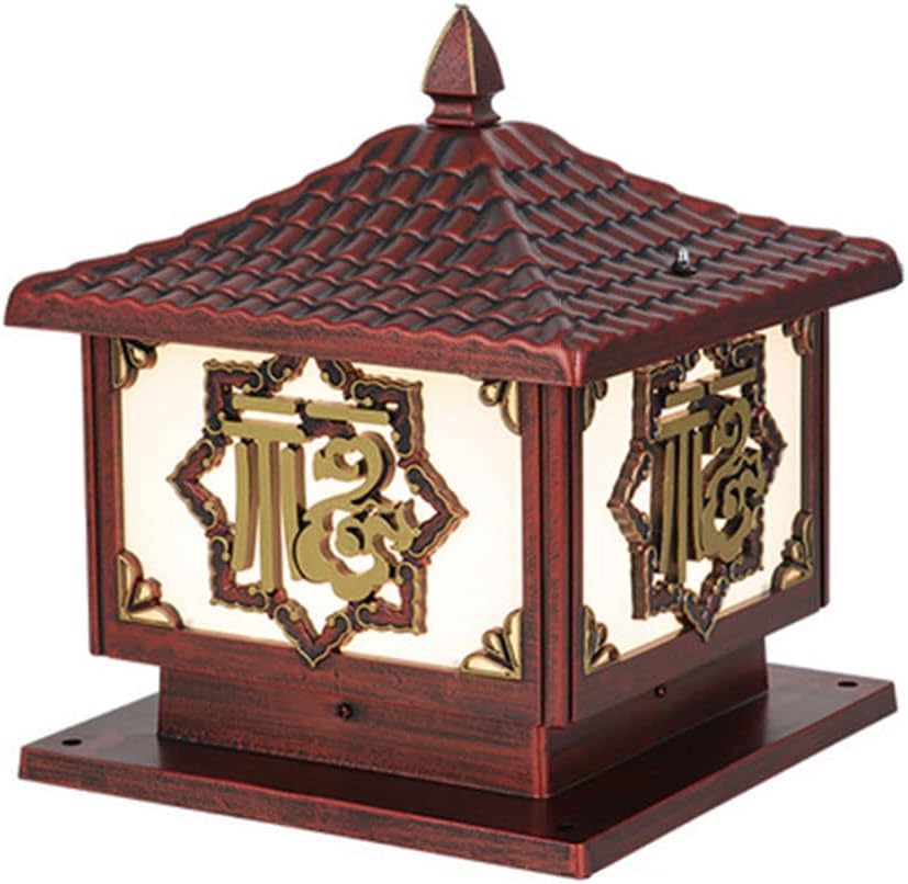 European Traditional Waterproof Pillar Light Outdoor Deck Fence Post Cap Top LED Light, High Voltage Wired Lantern Column Lamp, Pier Mount Outdoor Lighting Fixtures for Front Yard, Garden P