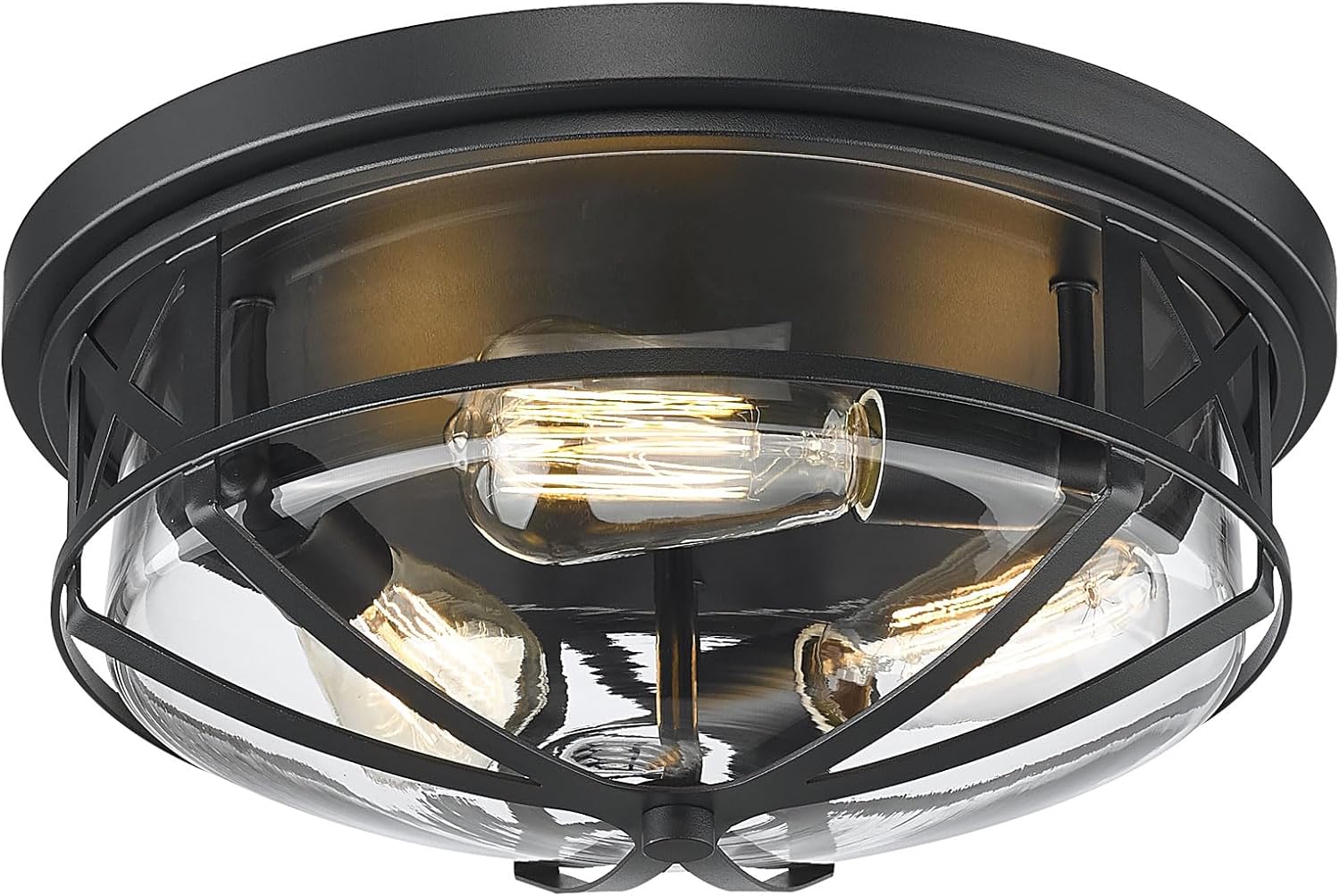Darkaway 15inch Ceiling Light Fixtures Large Flush Mount Light Fixtures with Clear Glass Shade, Indoor Outdoor Ceiling Light for Hallway Entryway Bathroom Stairway Porch Kitchen 3-Light E26