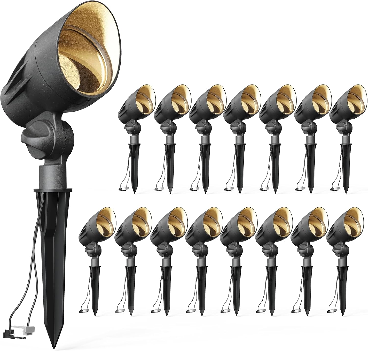 VENUS MANUFACTURING 16 Pack Low Voltage Landscape Flood Light 50W Halogen Outdoor Landscape Lighting Kits 380 Lumen Black Waterproof Spotlights 12V 3000K Warm White Metal Tree Lights for Garden & Yard
