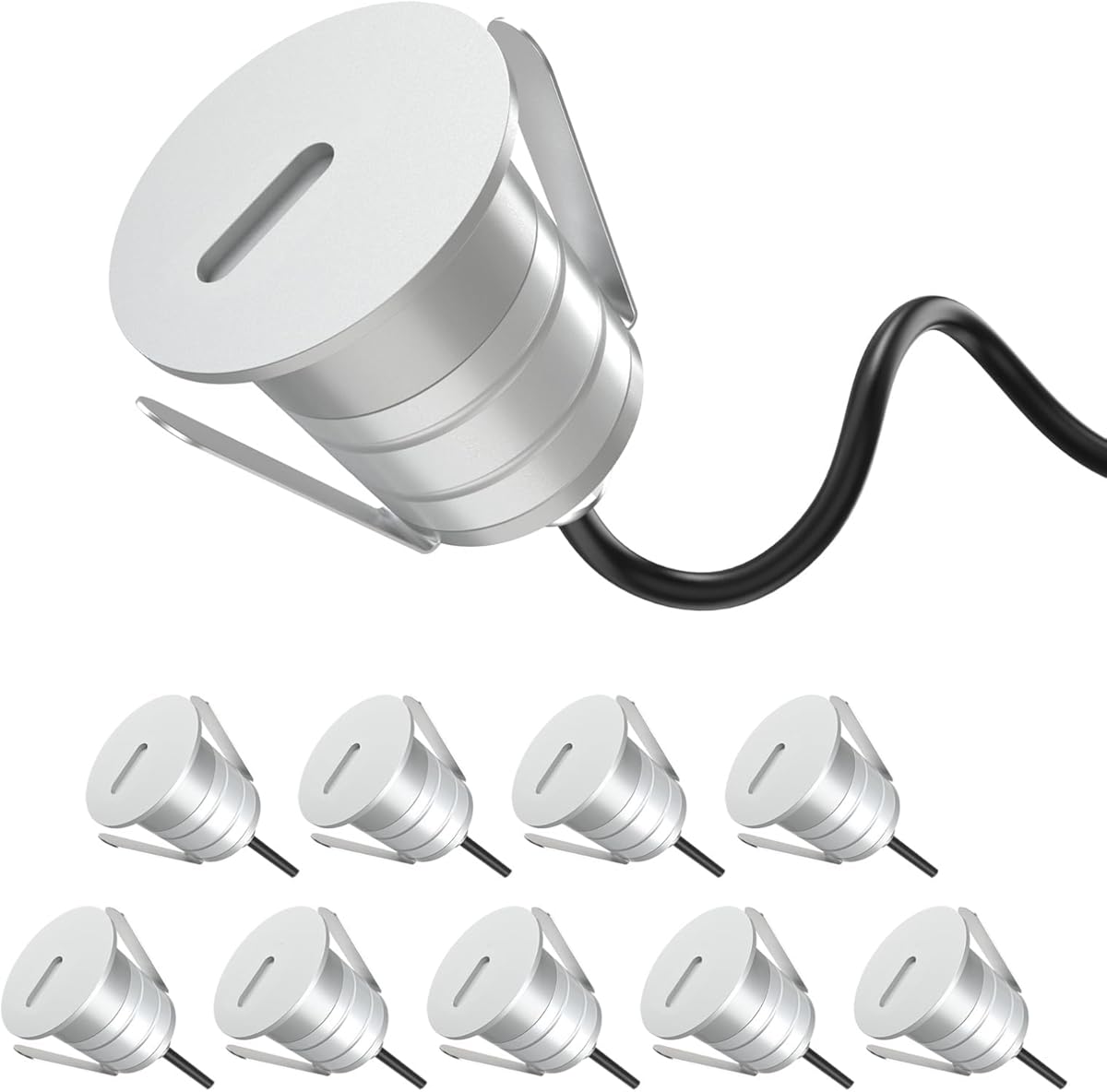 LED Step Lights 10 Packs, 3000K 1W Low Voltage 12V DC/AC 24V DC Recessed In-ground Well Light, IP67 Waterproof Landscape Lighting for Deck, Stair, Yard, Pathway, Garden
