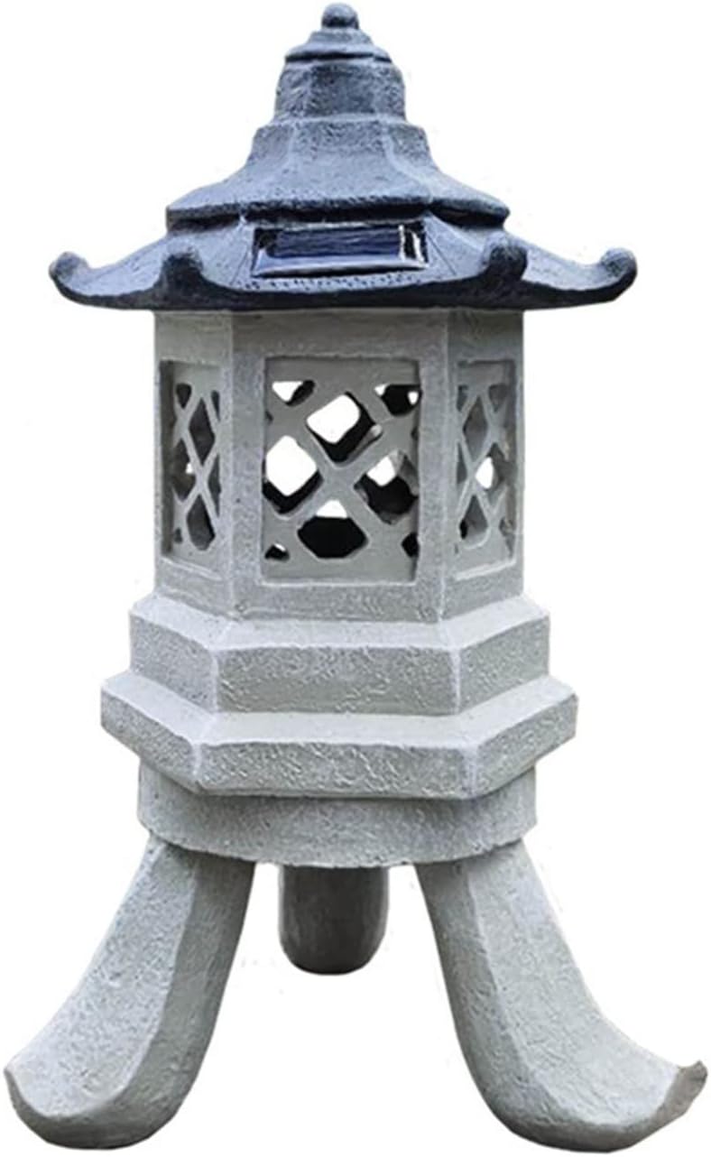 Pagoda Light Outdoor Statue, Large 12.6" Resin Oriental Theme Garden Solar Garden Light, Seven Light Modes