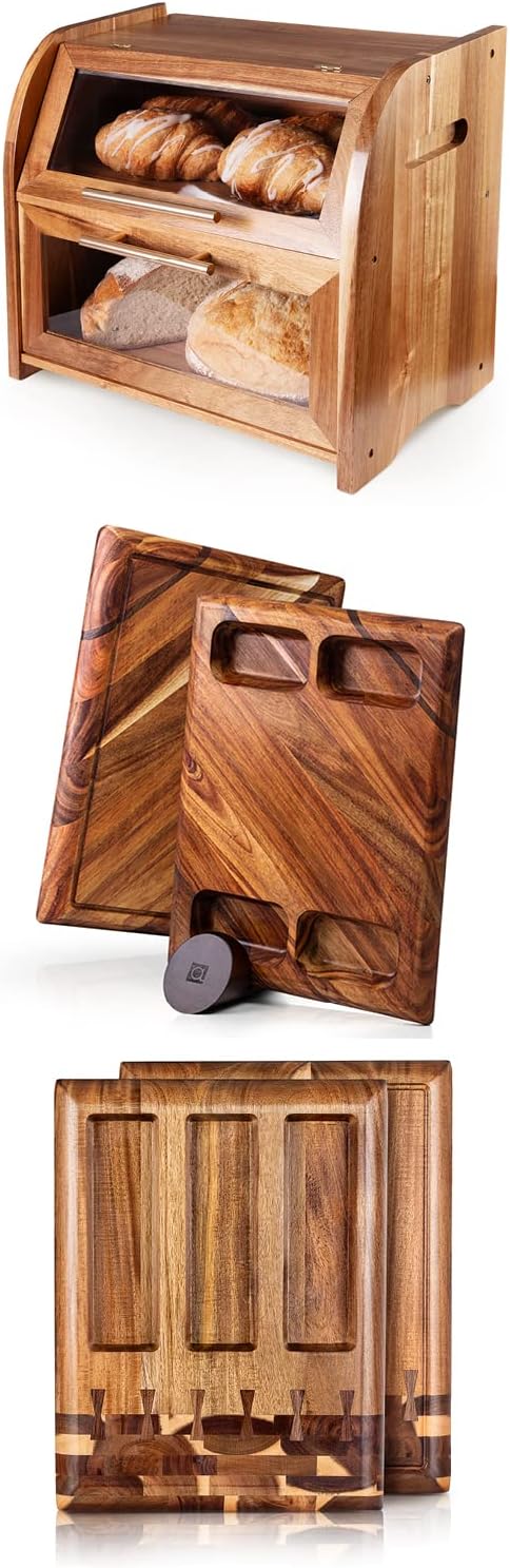 Apace Living Acacia - Bread Box + Cutting Board Set + Multi-Board Stand