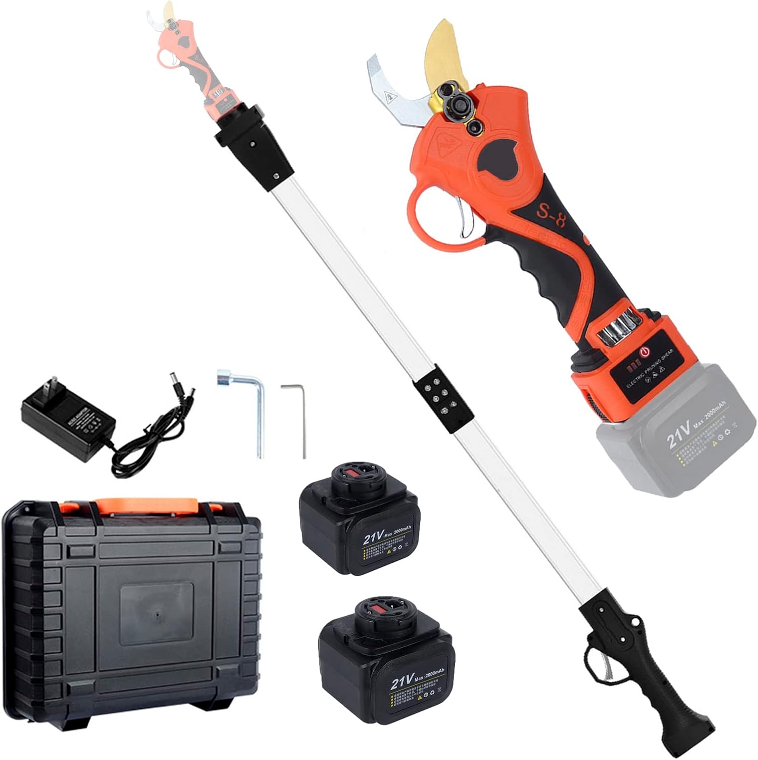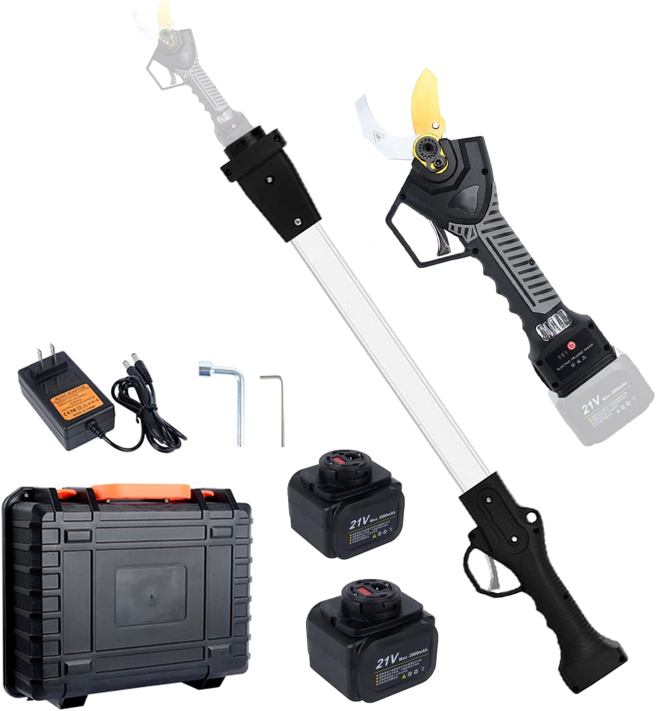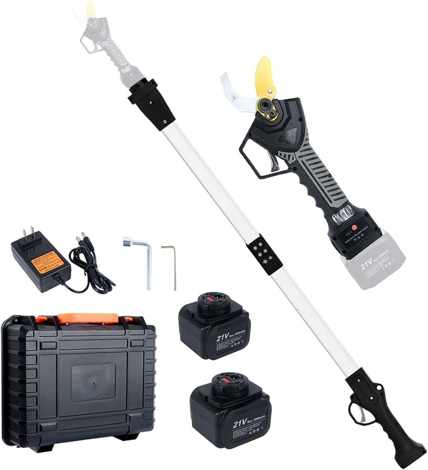 Electric Pruning Shears Professional Cordless Pruner with 81cm/32" Extension Pole, Brushless Electric Tree Trimmer for Gardening with 2 PCS Rechargeable Battery, 40mm/1.6" Cutting Diameter