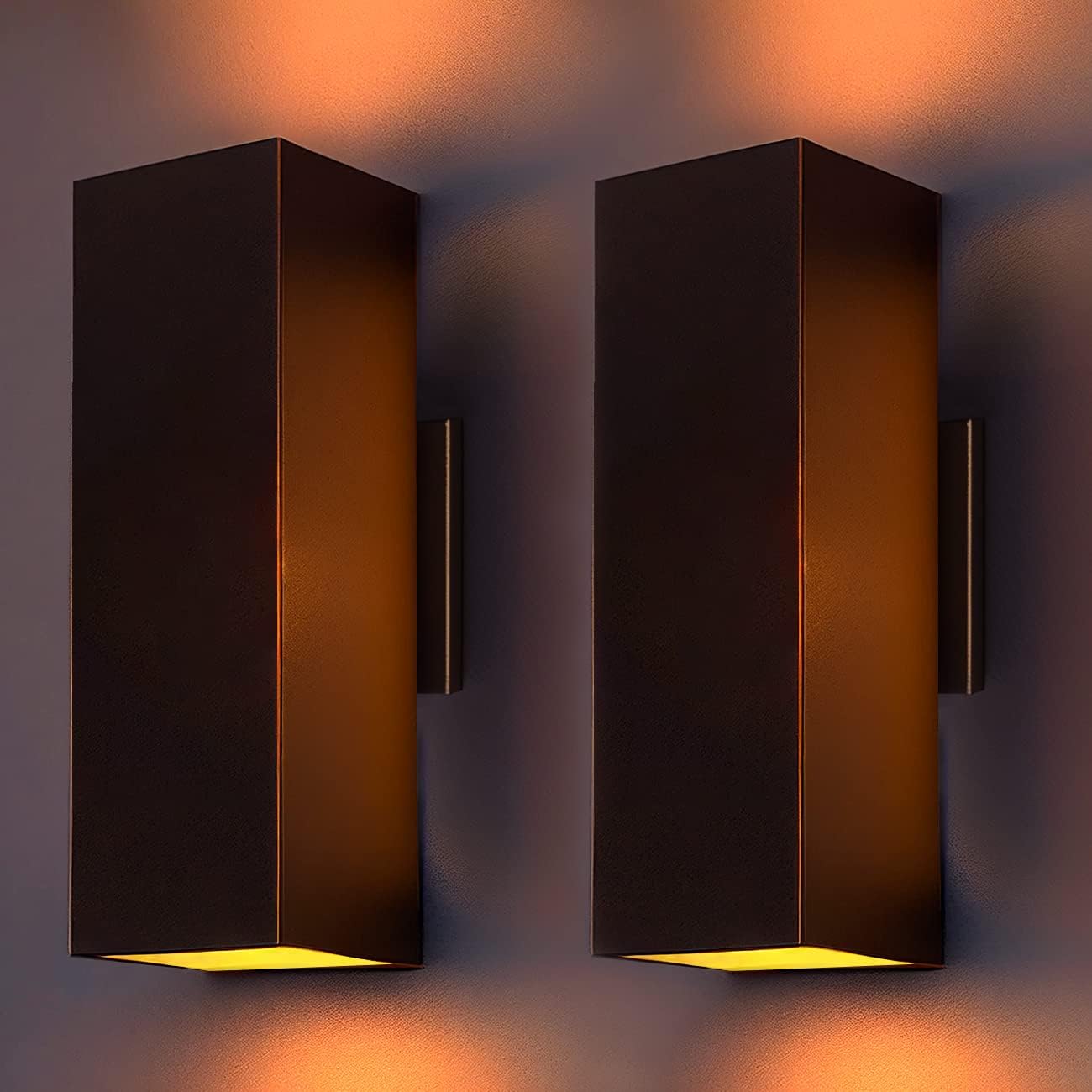 wowlite Modern Up Down Wall Lights Outdoor Dusk to Dawn Photocell Sensor, LED Outdoor Wall Lighting, IP65 Waterproof Bronze Porch Lantern, 13" Square Wall Sconce for House Garden Entrance, 2 Pack