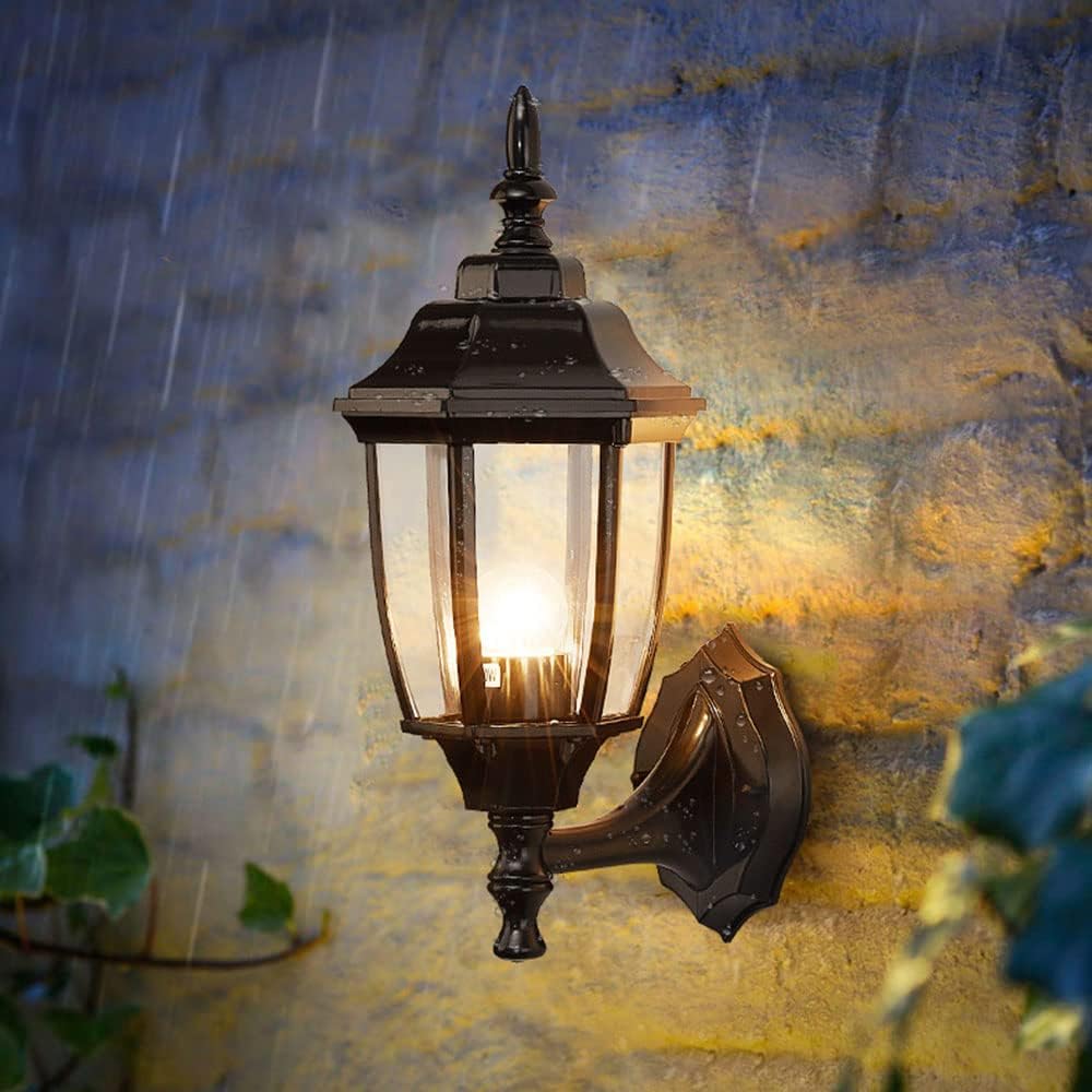 Sucolite Outdoor Wall Light Fixtures Wall Mounted, Exterior Waterproof Porch Lights Wall Lanterns, Outside Wall Sconces with Water Ripple Glass for House Front Door Garage, Retro Vintage Style, 2 Pack