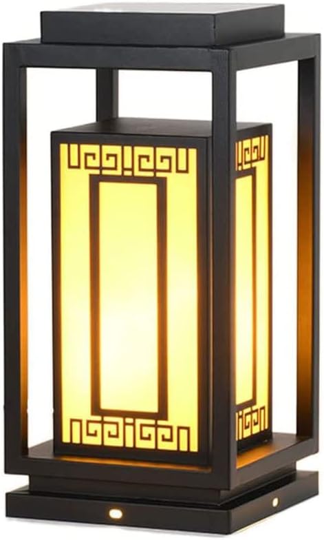 European Solar Outdoor Post Light Remote Control Pole Lantern Fixture Solar Panel V 6V/3W Pillar Lighting for Garden, Lawn, Pathway, Driveway, Front/Back Door ( Color : Black , Size : Height:110cm )