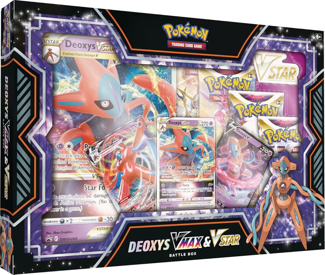 Pokémon TCG: Deoxys VMAX & VSTAR Battle Box (3 Foil Promo Cards, 1 Oversize Foil Card & 4 Booster Packs)