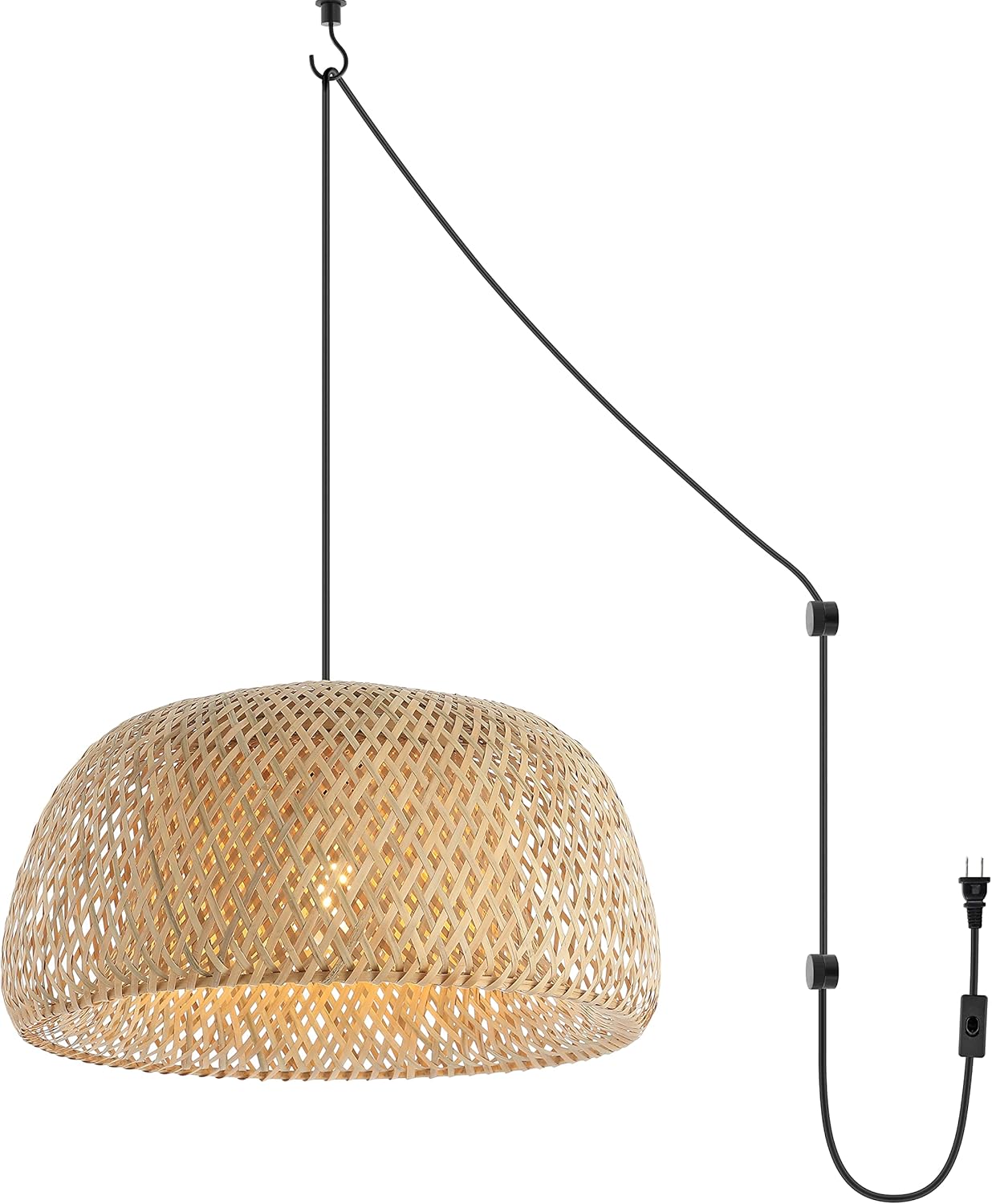 JONATHAN Y JYL1403A Mateo 18" 1-Light Farmhouse Coastal Bamboo 180" Cord Plug-in or Hardwired LED Pendant Modern Contemporary Adjustable Dining Room Living Room Kitchen Island Foyer Bedroom, Brown
