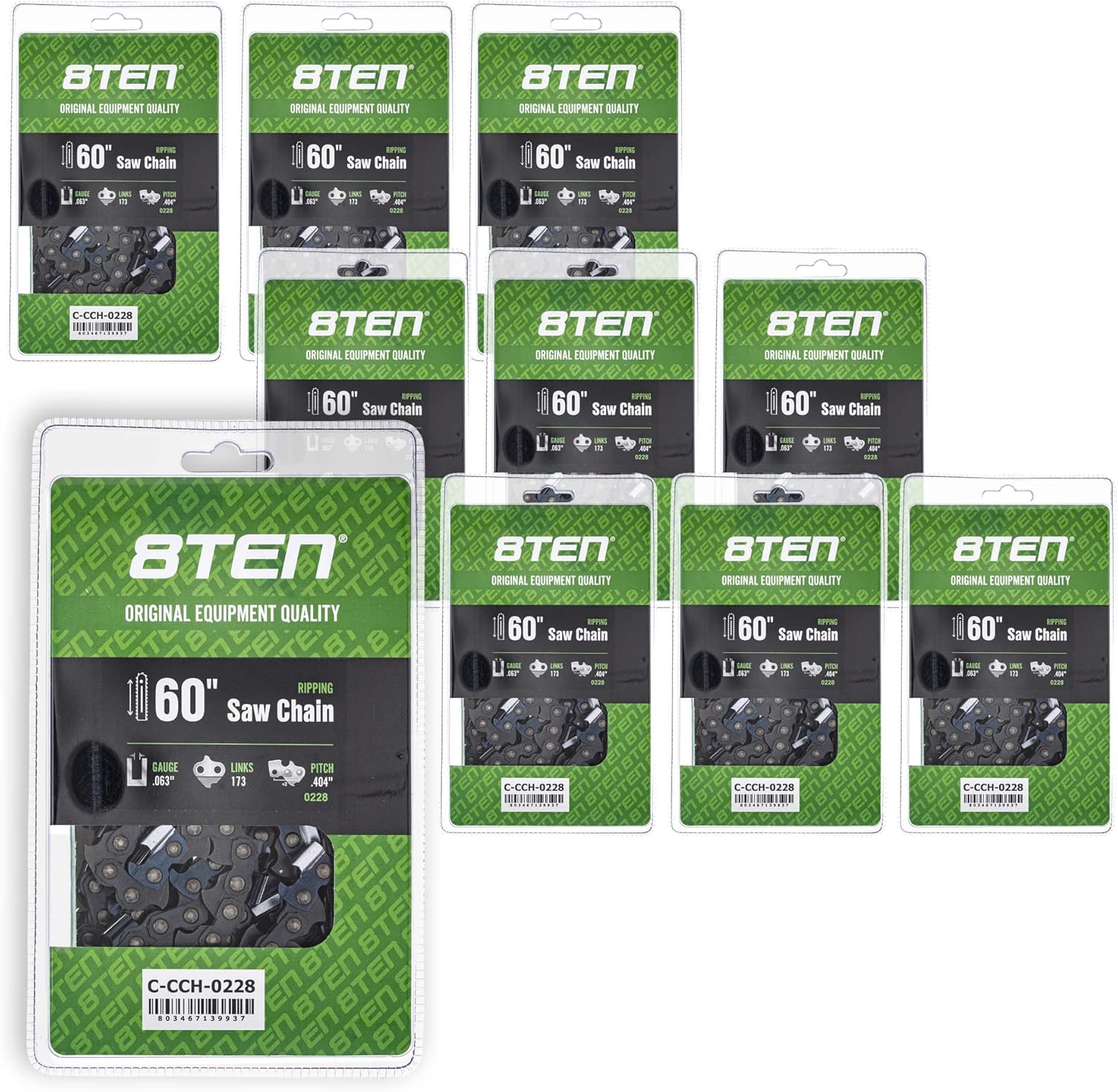 8TEN Ripping Chainsaw Chain 60 Inch .063 .404 173DL for Stihl 051 070 075 076 084 088 MS880 090 (10 Pack)