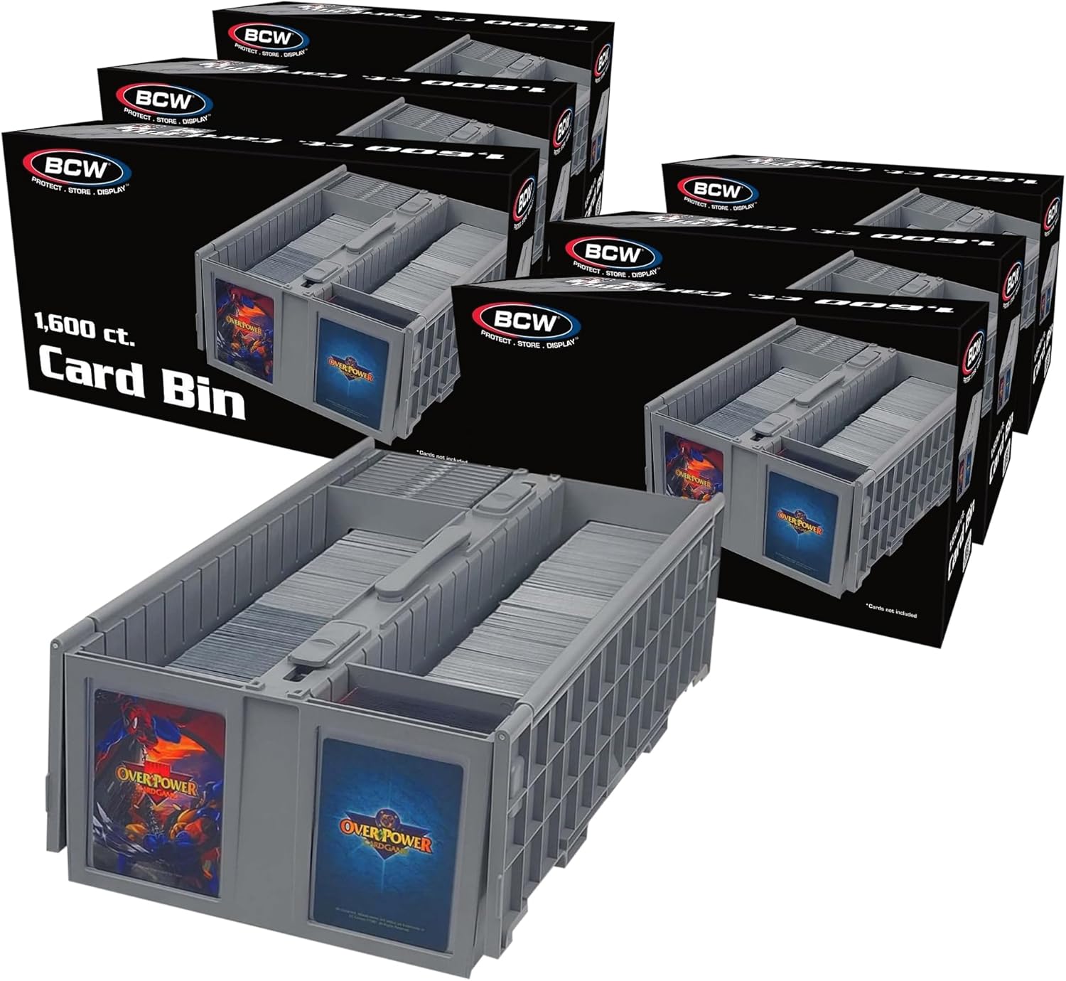 BCW Collectible Card Bin – (6-Pack, Gray) | Holds up to 1600 Cards | Plastic Storage Box for Pokémon, MTG & Sports Cards
