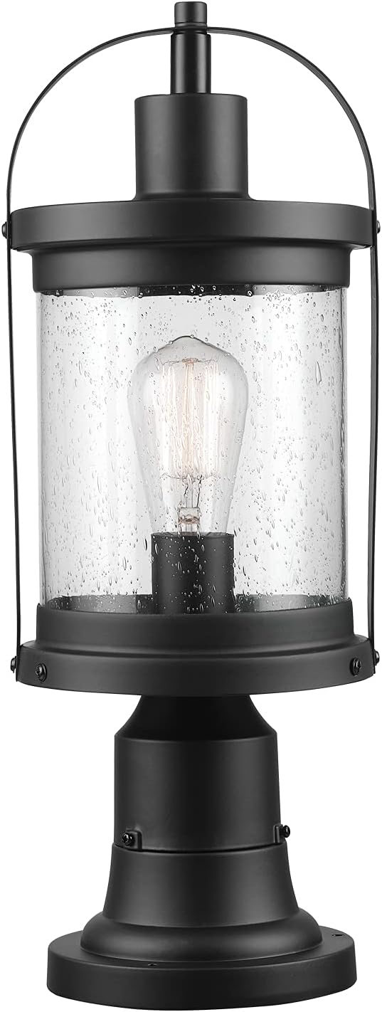 GLOBE Electric 44717 Zeke 1-Light Outdoor Lamp Post Light Fixture, Matte Black, Seeded Glass Shade, Bulb Not Included