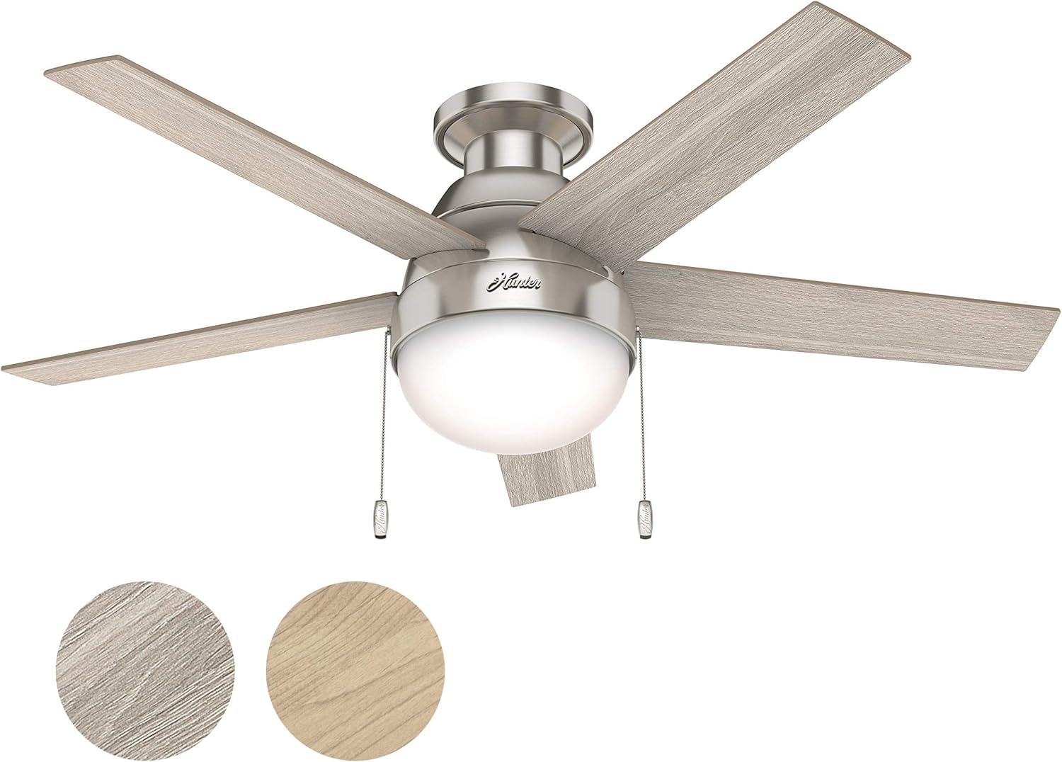 Hunter Fan 46 inch Brushed Nickel Low Profile Indoor Ceiling Fan with Light Kit (Renewed)