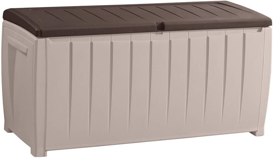 Novel 90-Gallon Brown Plastic Deck Storage Box Multi Color Uv Protected Water Resistant
