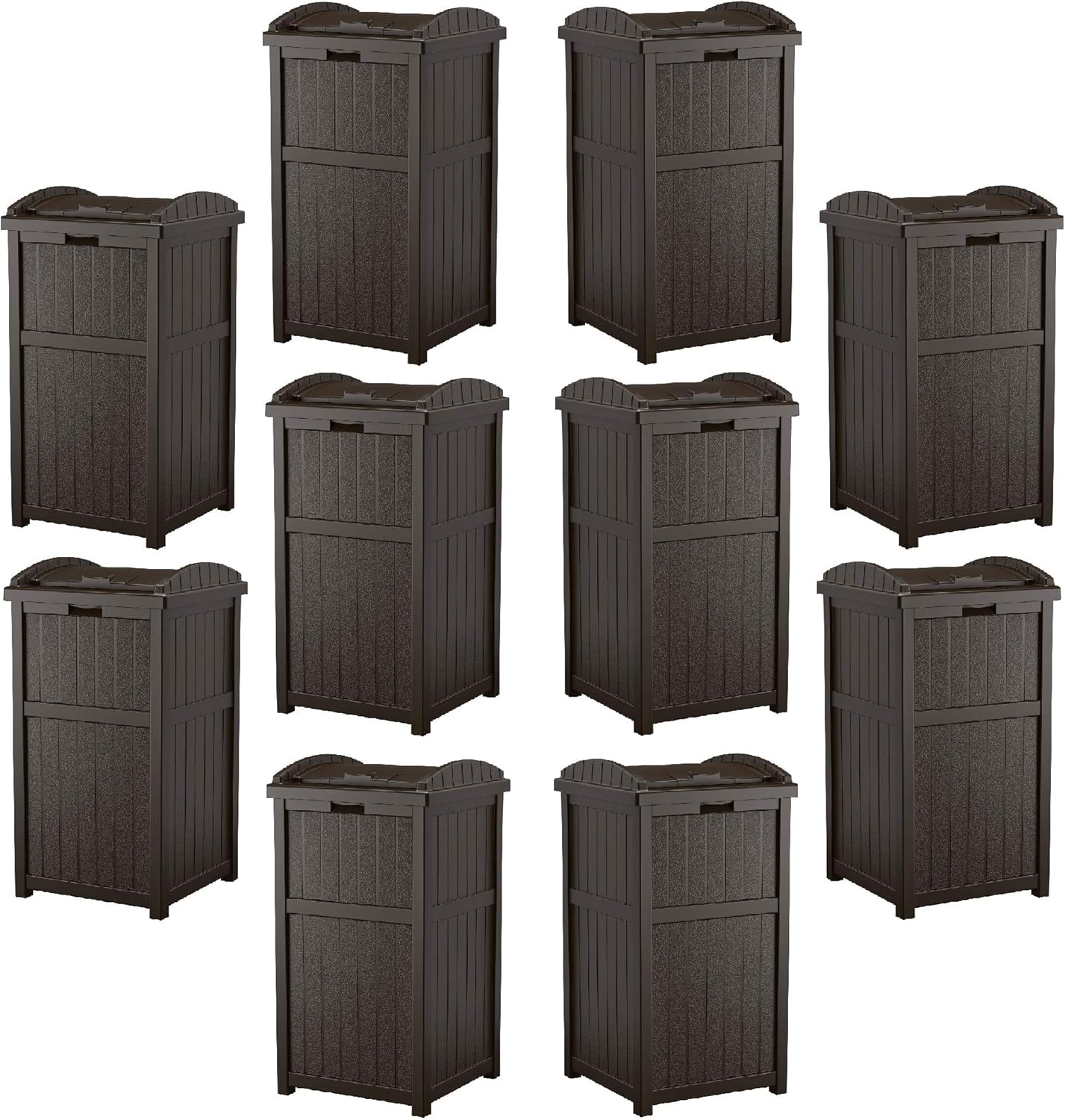 Suncast Trash Hideaway Outdoor 33 Gallon Garbage Waste Can Bin, Java (10 Pack)